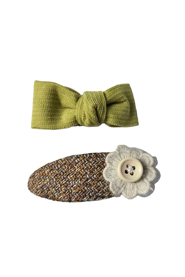 Home Shop baby clothing/accessories/hair accessories OFM Baby Hair Clip 2 Piece Set - Green Ribbon