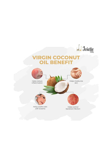 VCO deeply hydrates and nourishes delicate baby skin, keeping it soft and smooth. Coconut oil has anti-inflammatory properties that help soothe and calm irritated skin, including diaper rash or eczema. VCO contains antioxidants and antimicrobial properties that aid in healing minor cuts, scrapes, or irritation on the baby's skin.