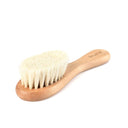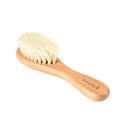 Super-soft wooden baby hair brush made from natural wood and goat hair bristles, designed to gently care for your newborn’s delicate scalp.