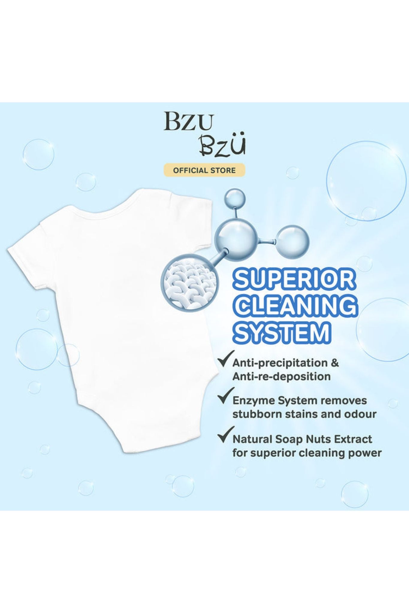 • Your baby’s clothes are squeaky clean & soft after each wash.