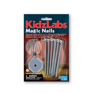 A fun way for kids to learn and teach science The 4M Magic Nails Kit gives children the opportunity to astound family and friends with a fun magic show that teaches scientific principles. Kids learn that magic is all about science, finding the truth behind the trick as they perform an improbable balancing illusion.