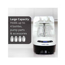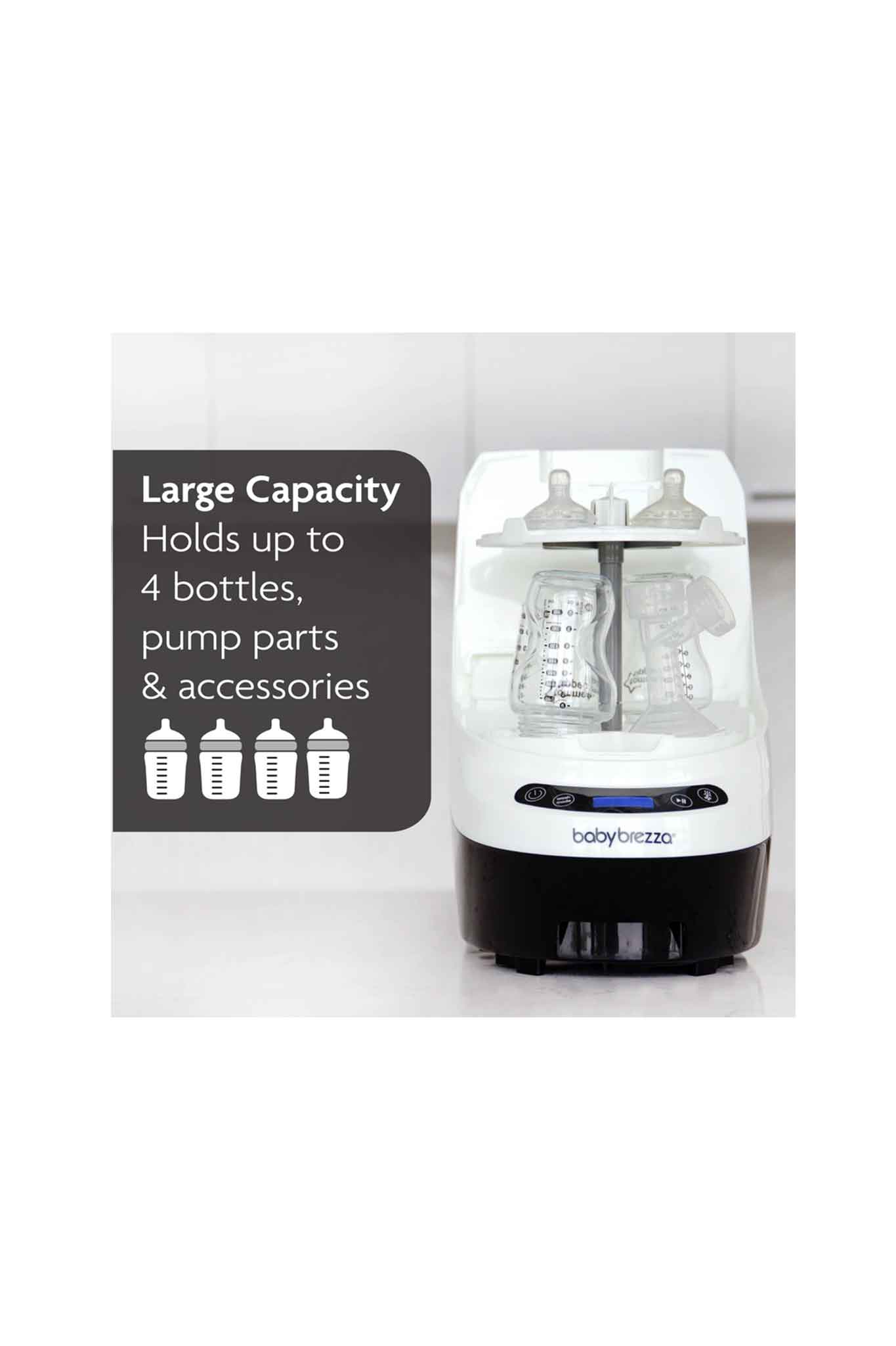 - Automatically washes, sterilizes & dries bottles, pump parts and sippy cups. Never use a bottle brush or drying rack again!