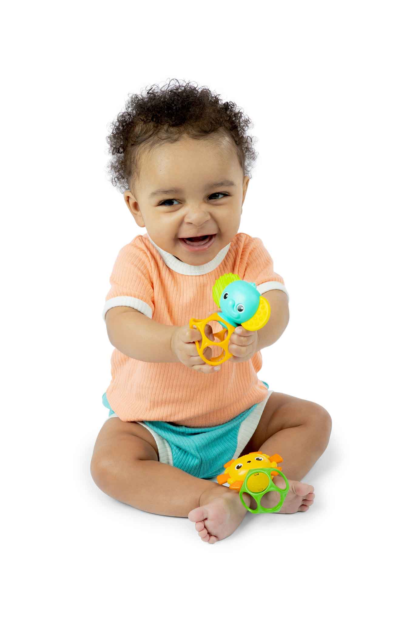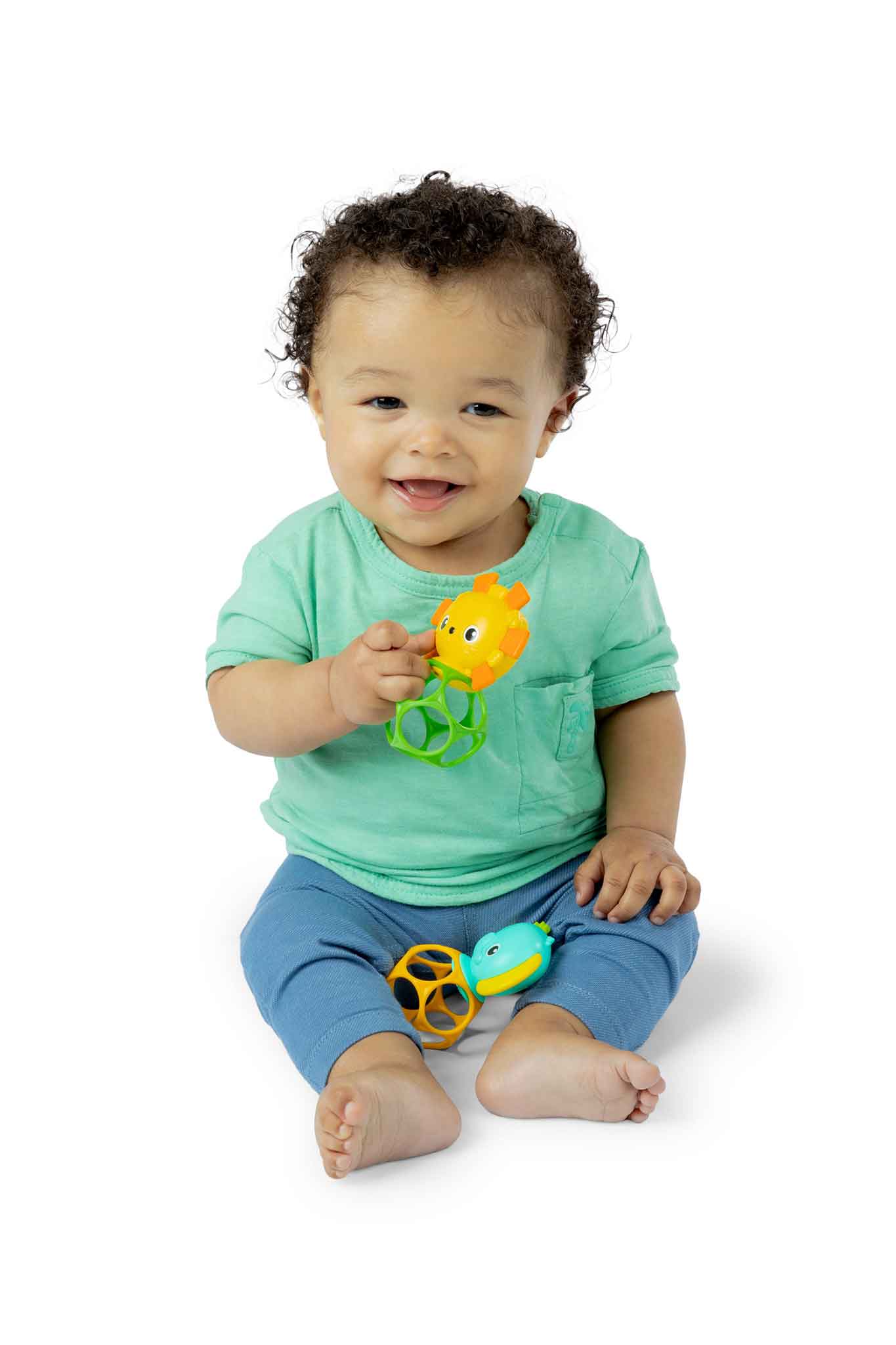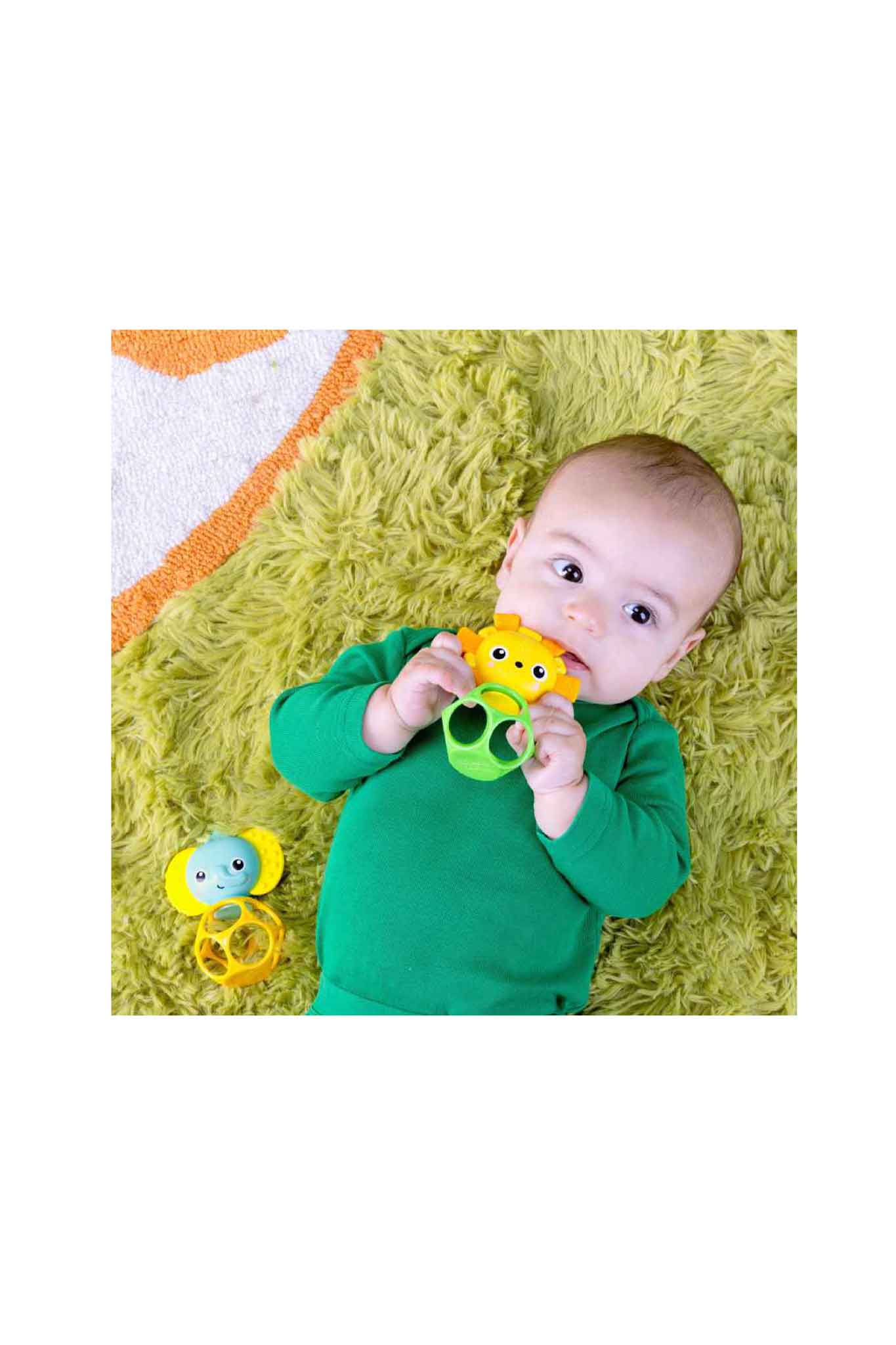 - Flexible, durable Oball™ design with lots of finger holes for tiny hands