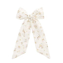 - Oversized bow with long tails