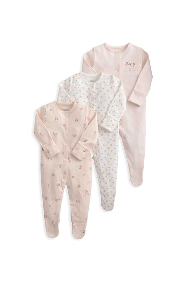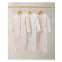 Mamas & Papas Sleepsuits (Pack of 3) - Wildflower Floral Prints: soft 100% cotton, long-sleeved sleepsuits with poppers for easy changes.
