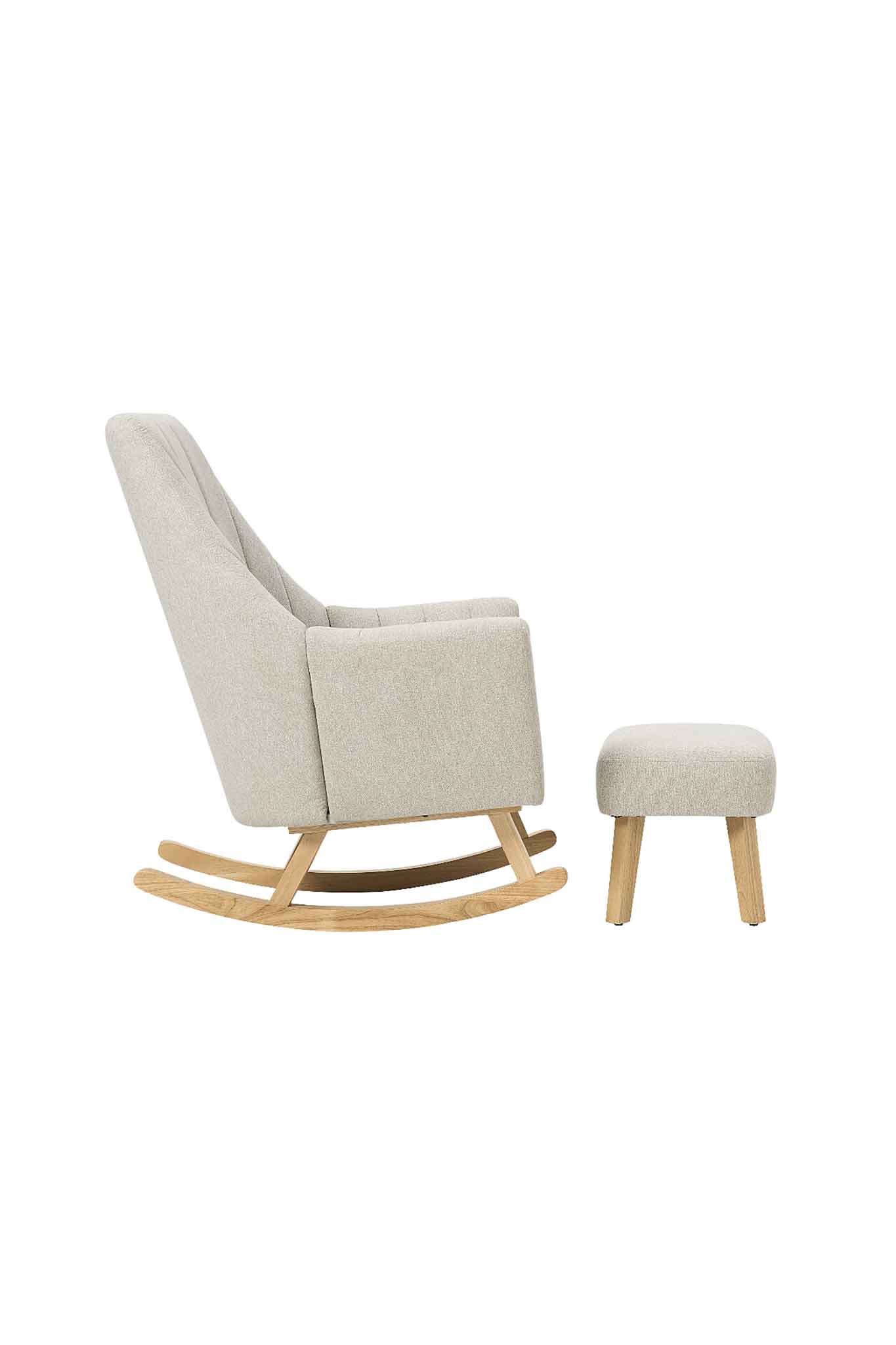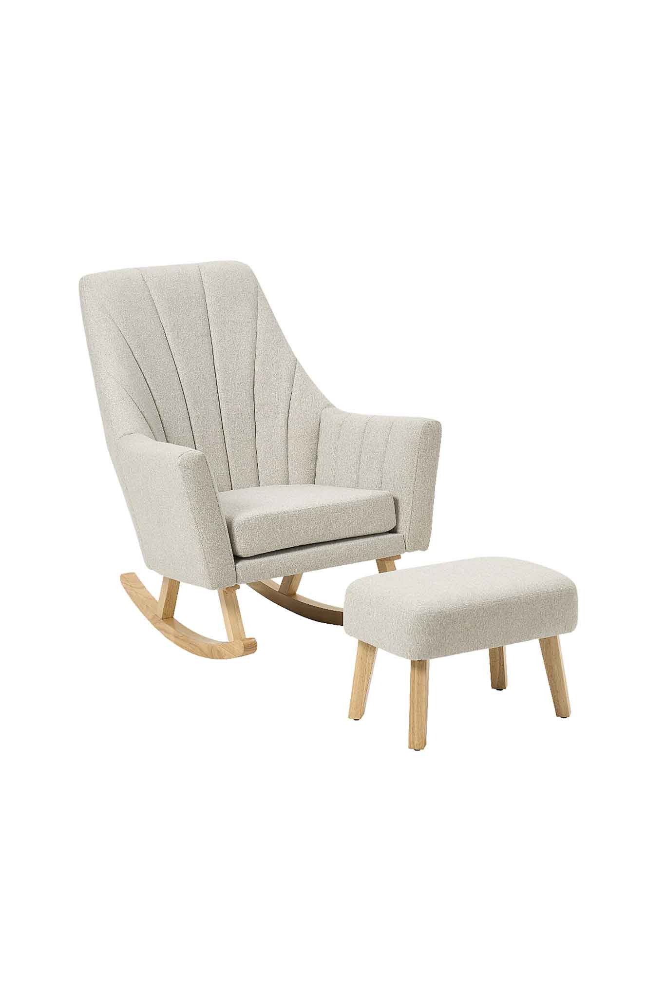With a stylish panelled design and soothing stone color palette, the versatile Jonah rocking chair and foot stool set complements most nursery themes.