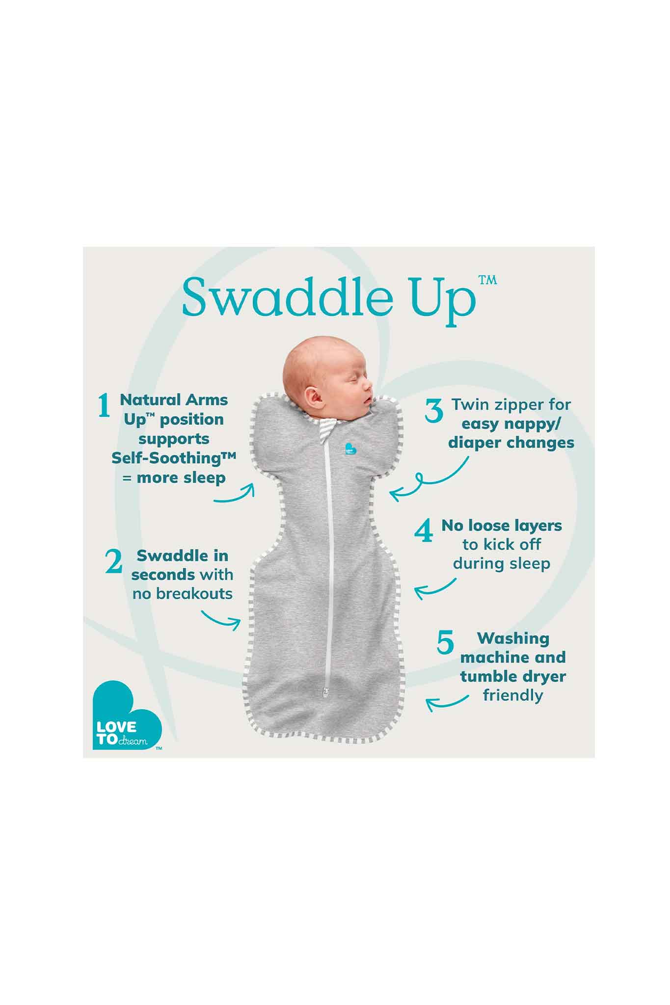 - Swaddle in seconds with no breakouts