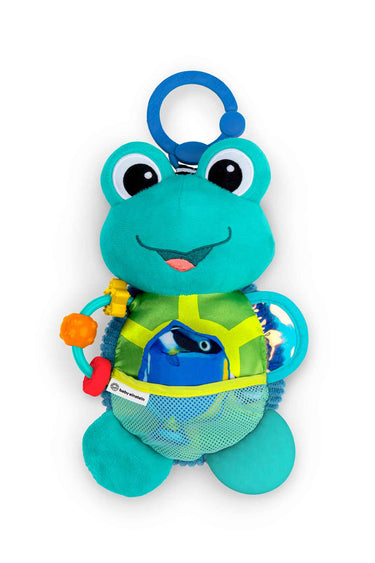 7 toys in all feature unique textures, crinkle sounds, high-contrast colors, and tactile elements to stimulate baby’s sense of touch and listening skills, and a bead chaser to promote fine motor skill development. High contrast colors on Neptune’s shell promote visual engagement. Soft, comforting plush features Neptune the Turtle from Baby Einstein Ocean Explorers programming. Included C-ring attaches Neptune to carriers or stroller, for discovery at home or on-the-go.