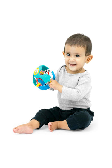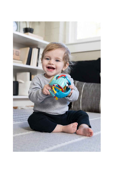 • Sensory ball toy with built-in rattle for engaging sound play