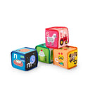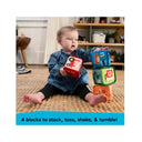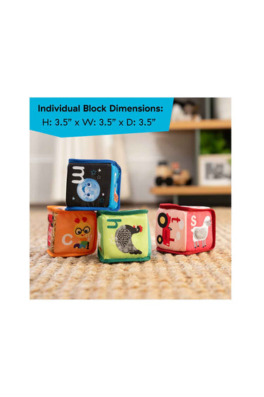 - Set of 4 multisensory soft blocks for stacking, squeezing, tossing and shaking