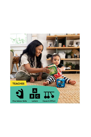 - Helps build fine motor skills and cause-and-effect discovery through play