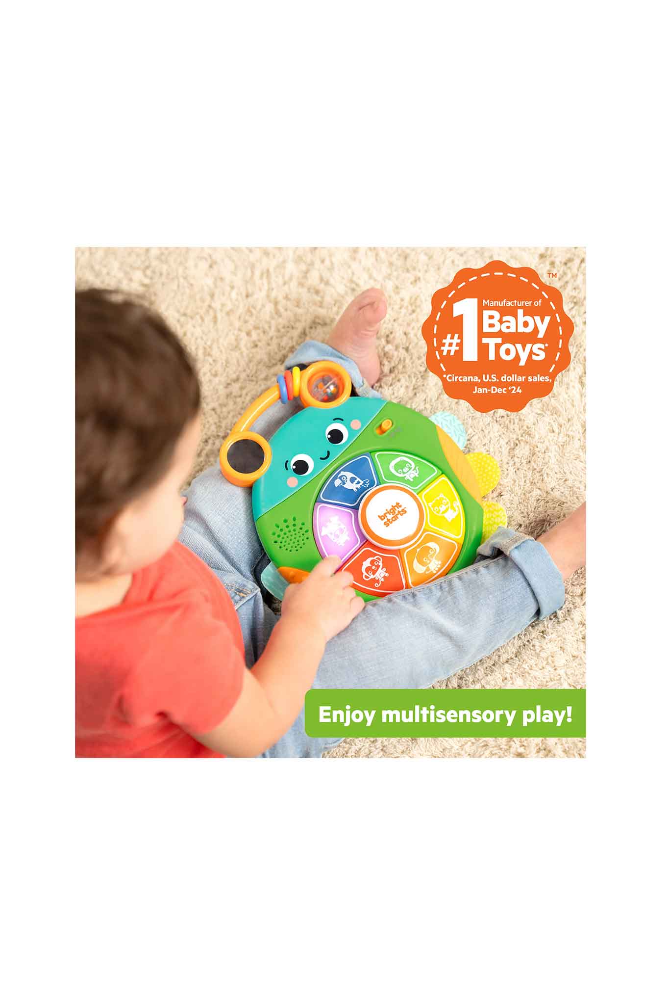 - Baby-safe mirror supports self-recognition and visual play