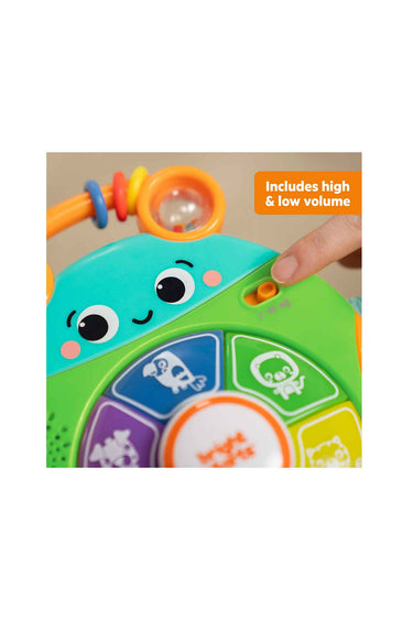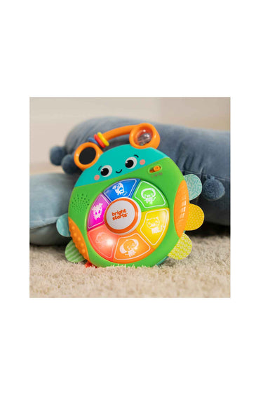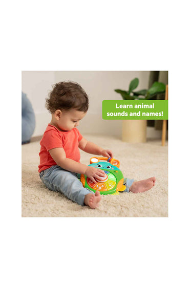 - Press the buttons to activate lights and hear animal names, sounds and songs