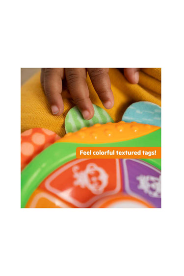 - 6 textured fabric tags with exciting textures and crinkle sounds