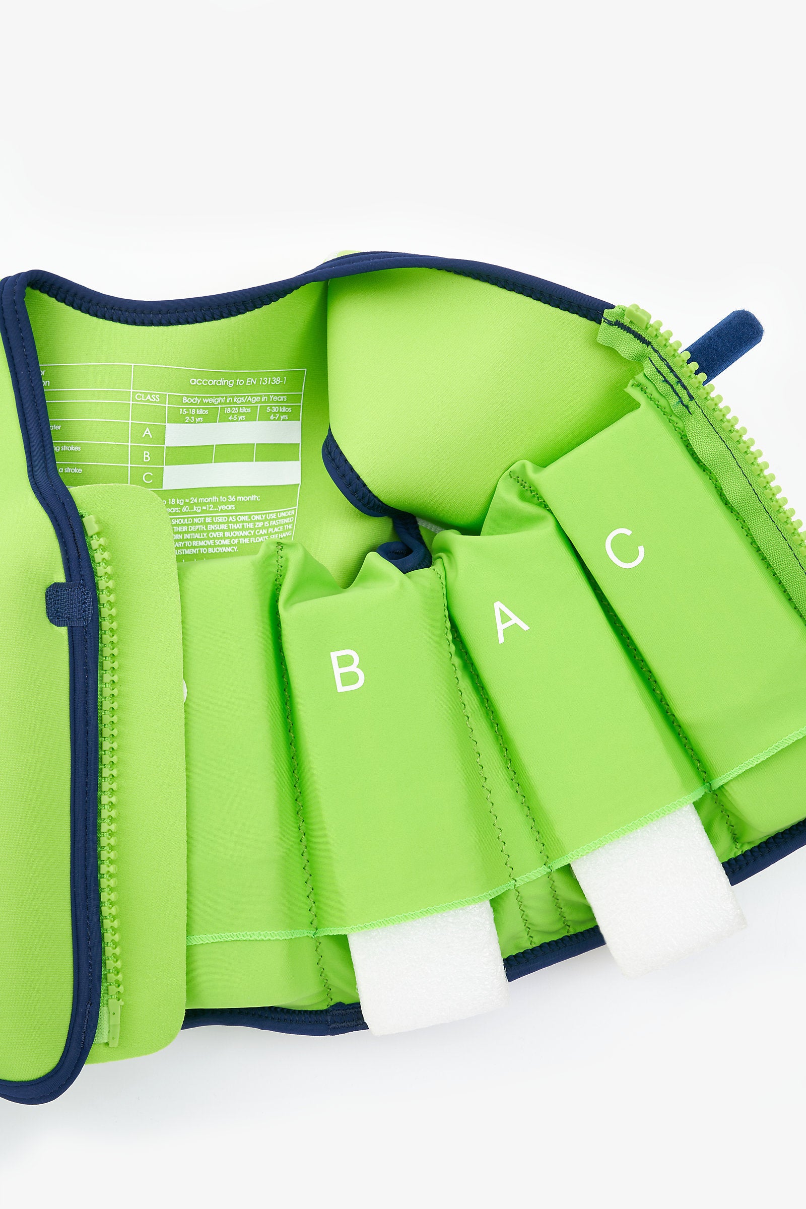 • removable float system to reduce buoyancy as the wearer's ability progresses