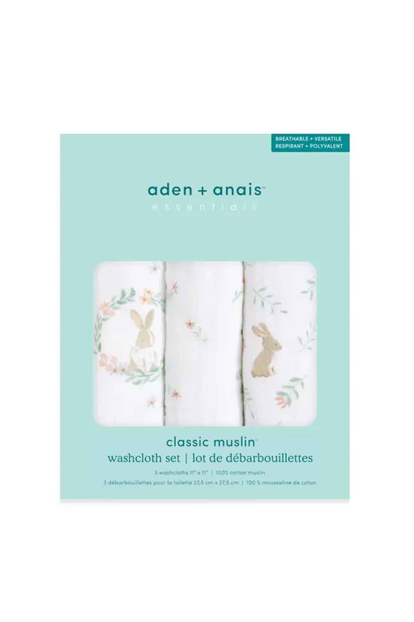 1x Aden+Anais Essential Cotton Muslin Washcloth 3pk