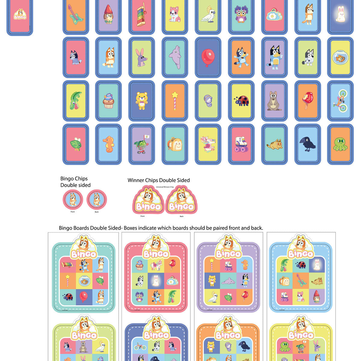 - Bingo game inspired by the Bluey show