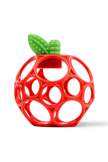 • Easy to grasp apple toy made from Bright Starts’ flexible, durable Oball technology features finger holes for small hands to hold and play