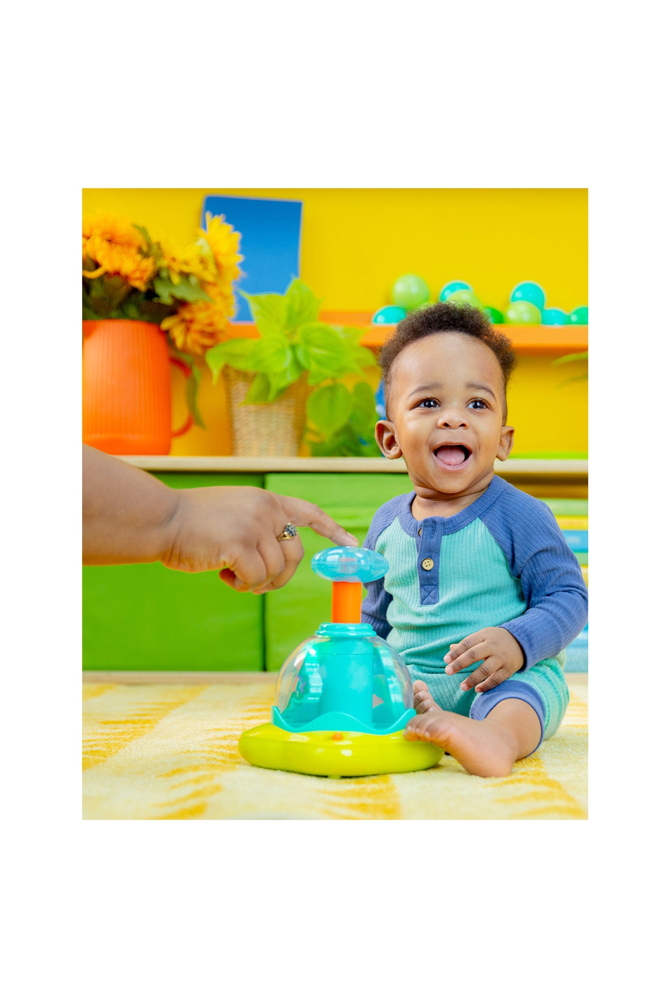 Get ready to wiggle and giggle alongside your infant with this activity toy. And in the middle of all that fun, this baby toy helps encourage fine motor skills!