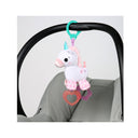 • Plush unicorn rides with baby wherever she goes!