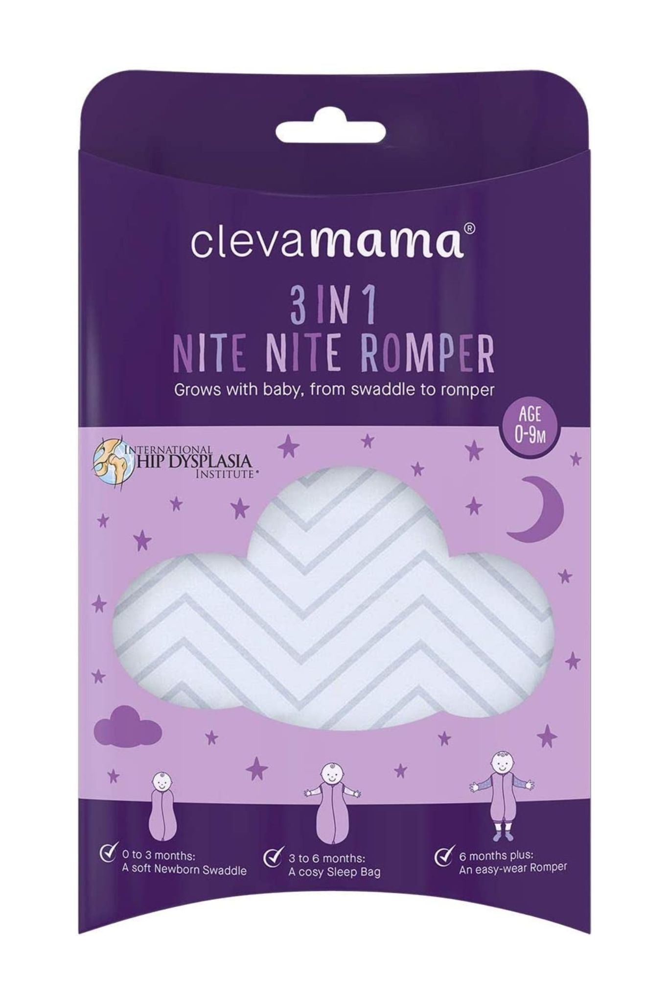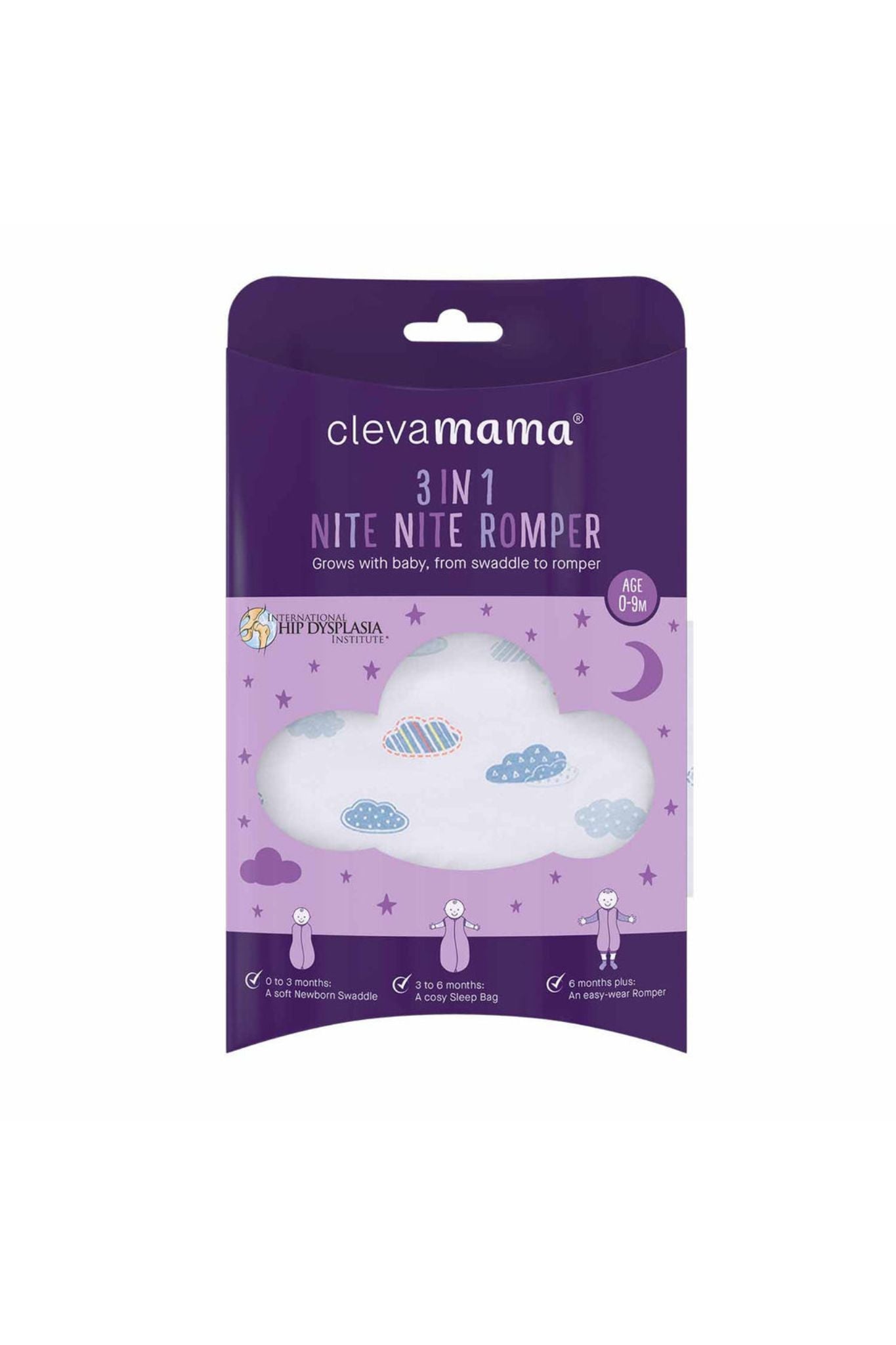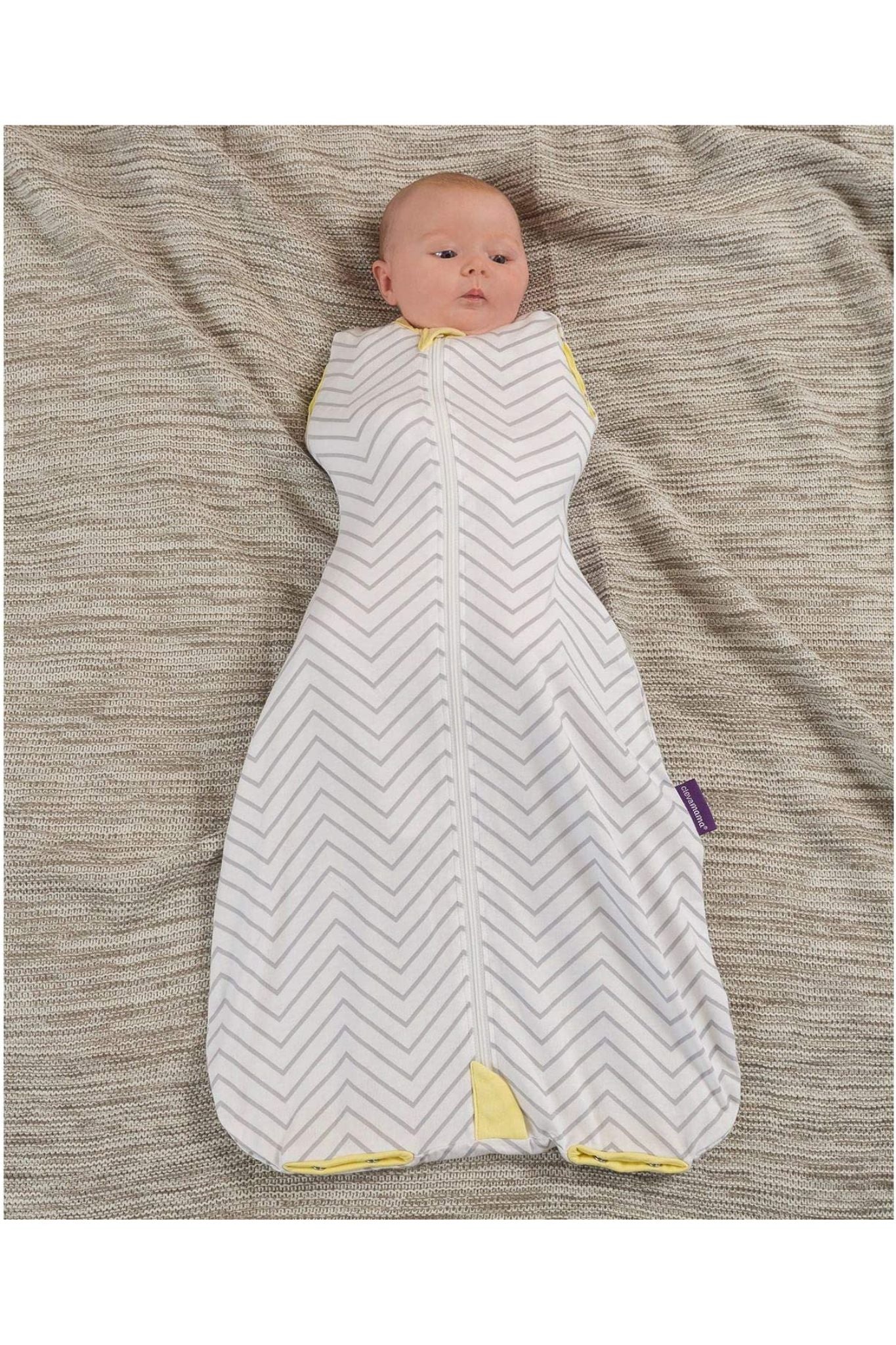Transitions from a soft newborn Swaddle to a cosy Sleep Bag to an easy-wear Romper for when the baby is able to stand and move about.