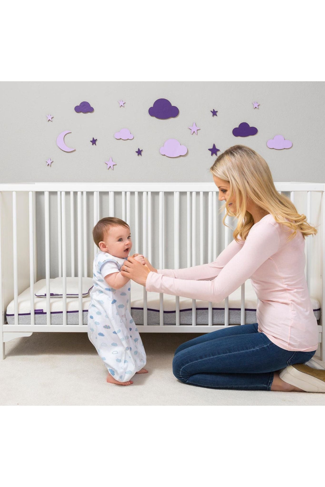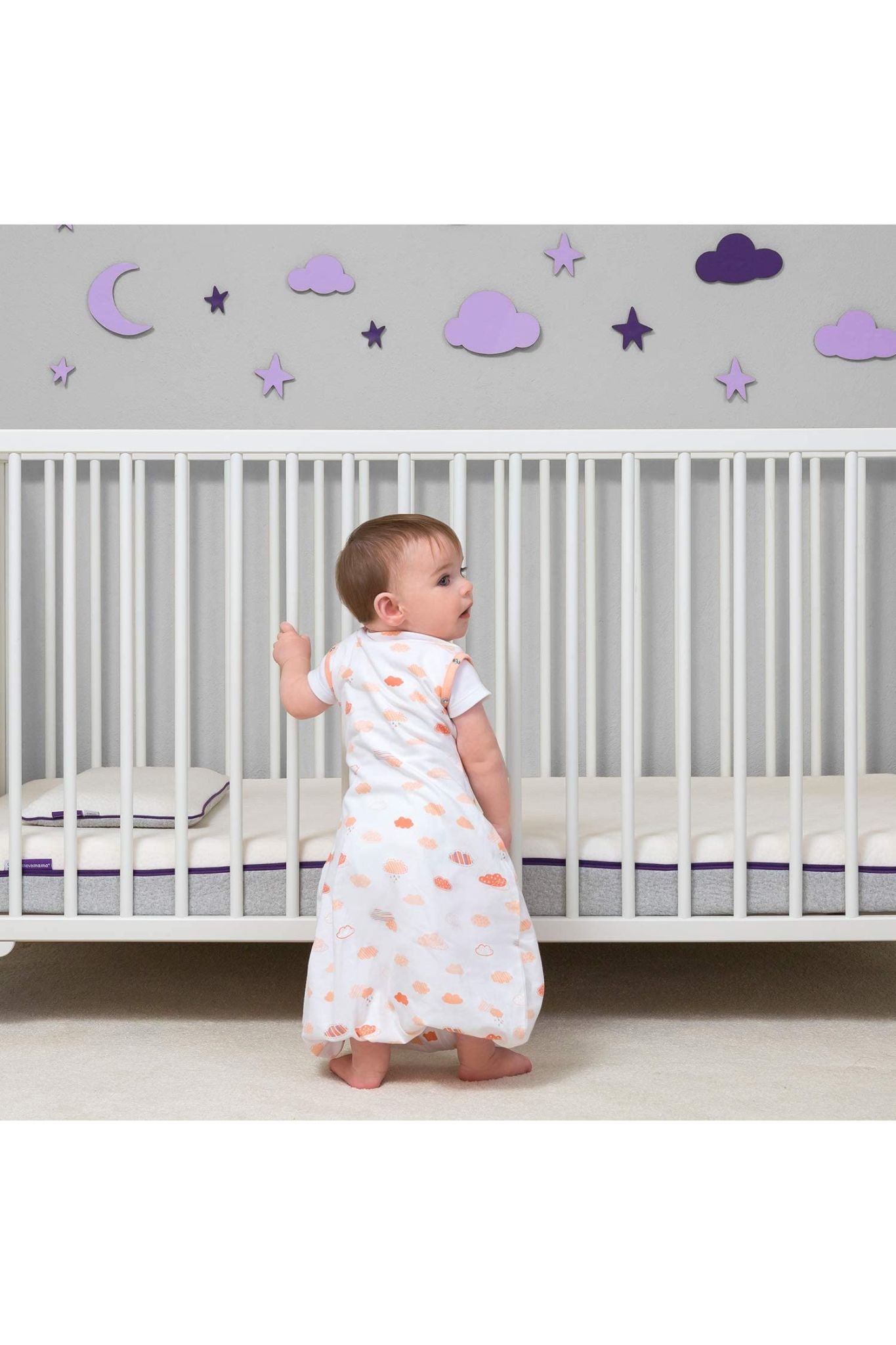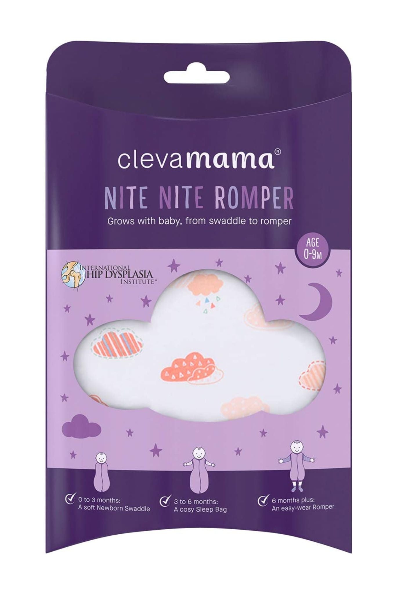 Transitions from a soft newborn Swaddle to a cosy Sleep Bag to an easy-wear Romper for when the baby is able to stand and move about.