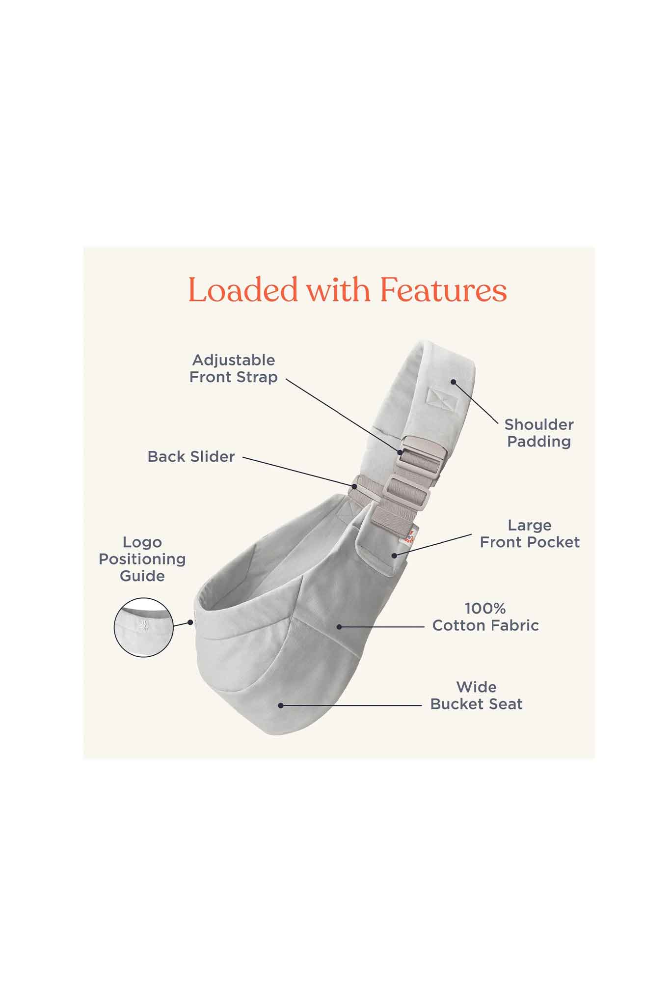 - Carry positions: front inward or hip carry only (not for back carry, forward-facing, or cradle carry)