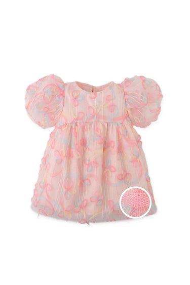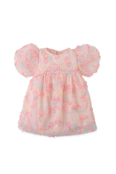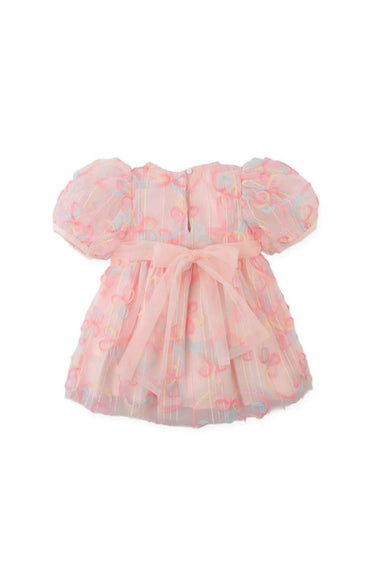 Gingersnaps Scribble Embroidered Tulle Dress with Back Bow
