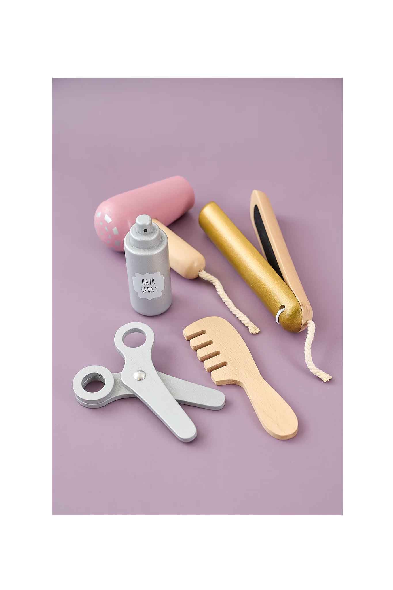 - 1 × wooden “hairspray” bottle