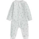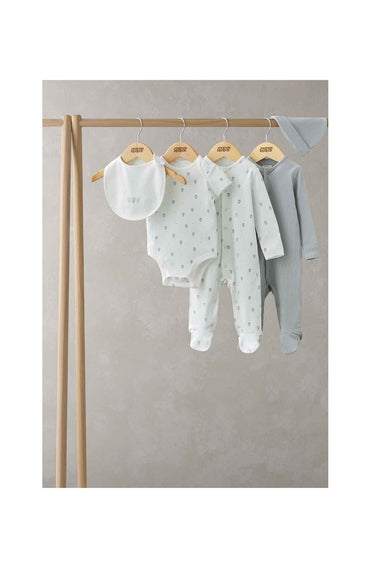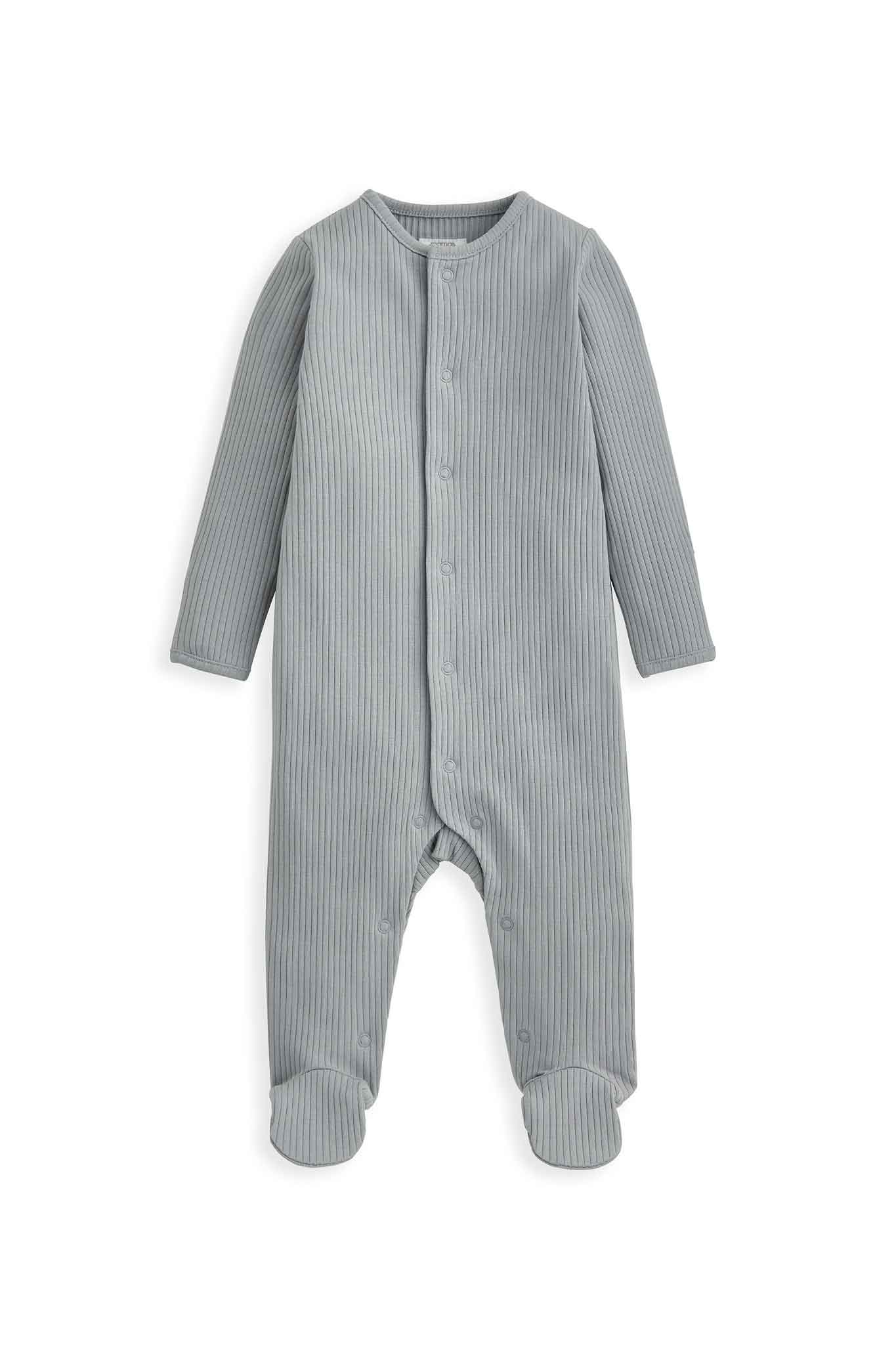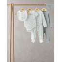 - 2 all-in-ones (AIOs): one in 100% cotton all-over print with poppers at centre front & gusset, one in cosy organic rib fabric