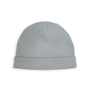 - Hat: organic rib fabric with tie-knot detail for a snug fit