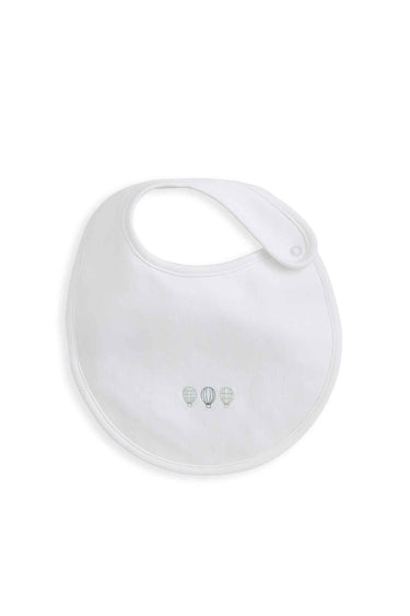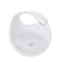 - Bib: cotton front with embroidery, soft terry reverse, popper fastening