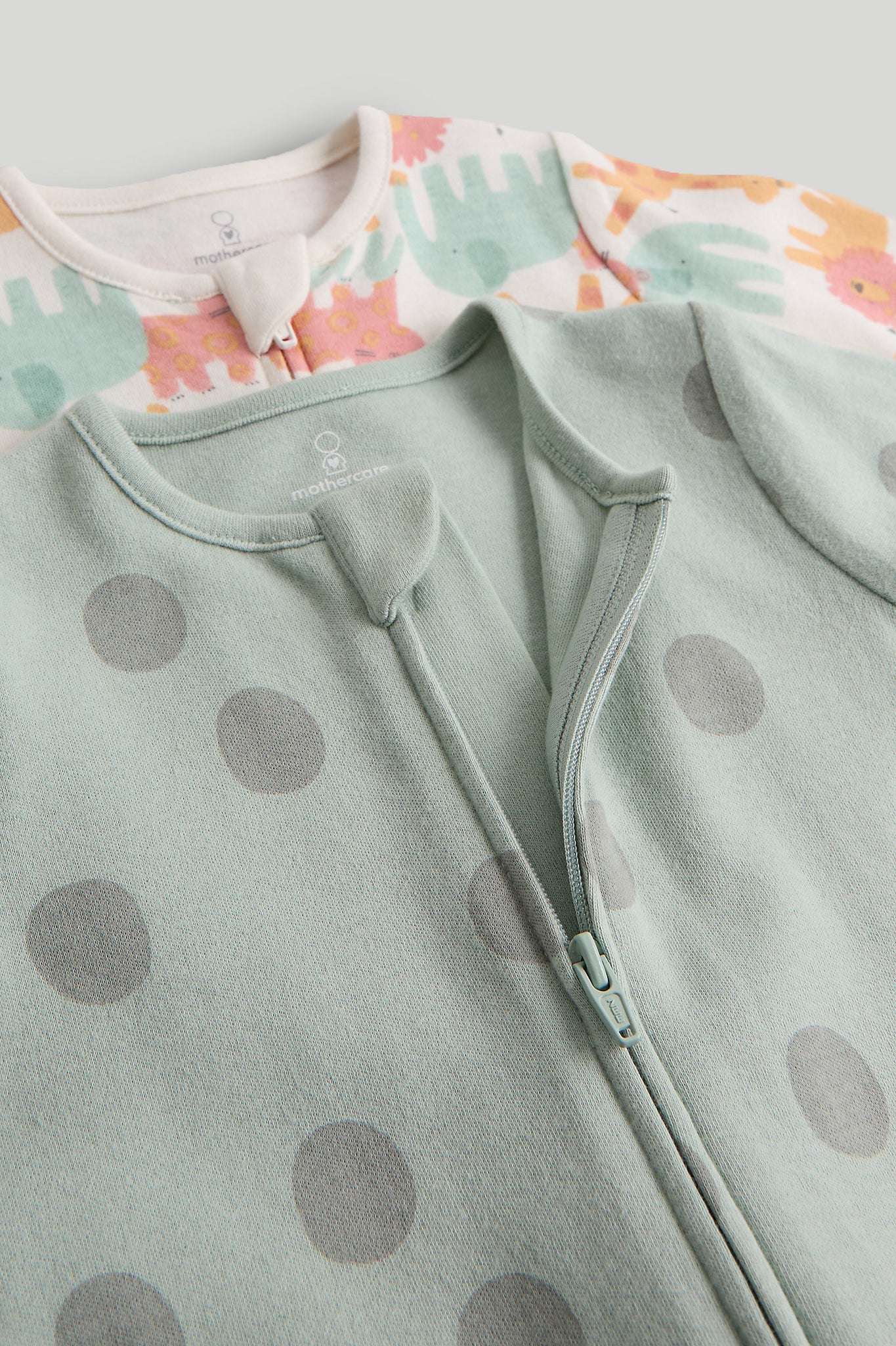 Mothercare 2 Pack Safari Footless Zip-Up Sleepsuits