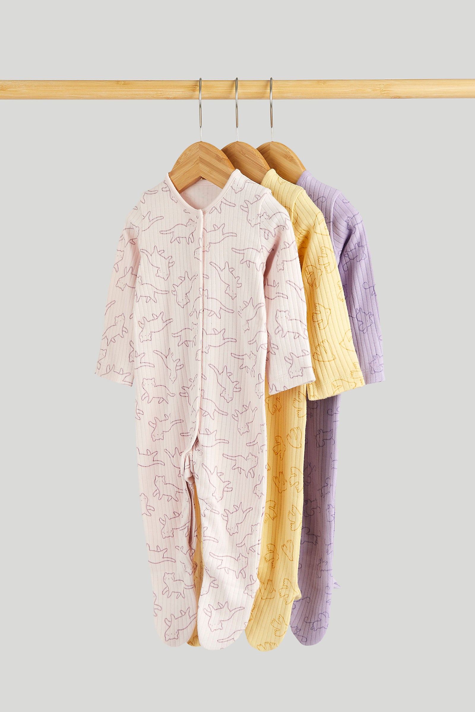 Mothercare 3 Pack Animal Ribbed Sleepsuits