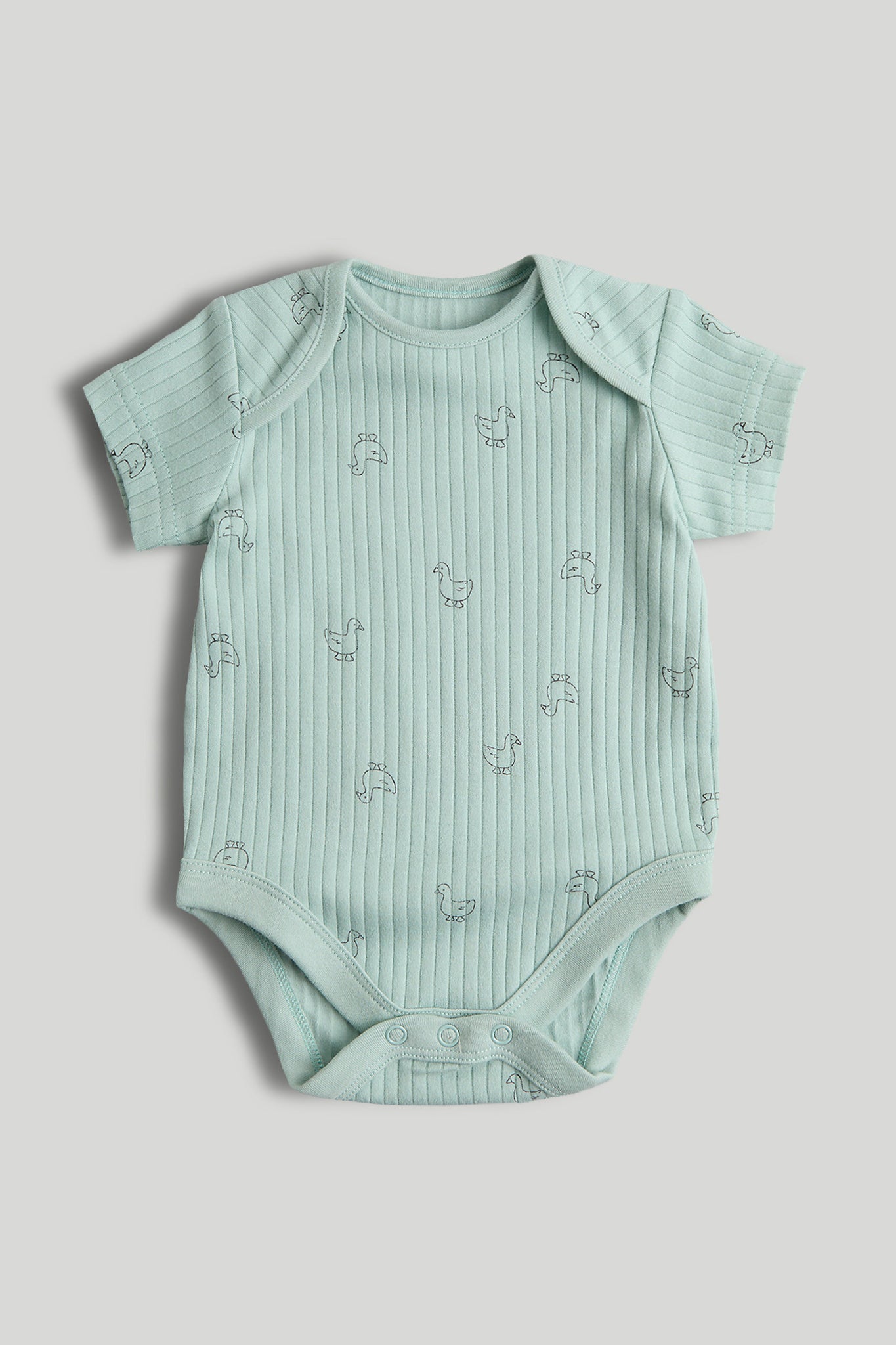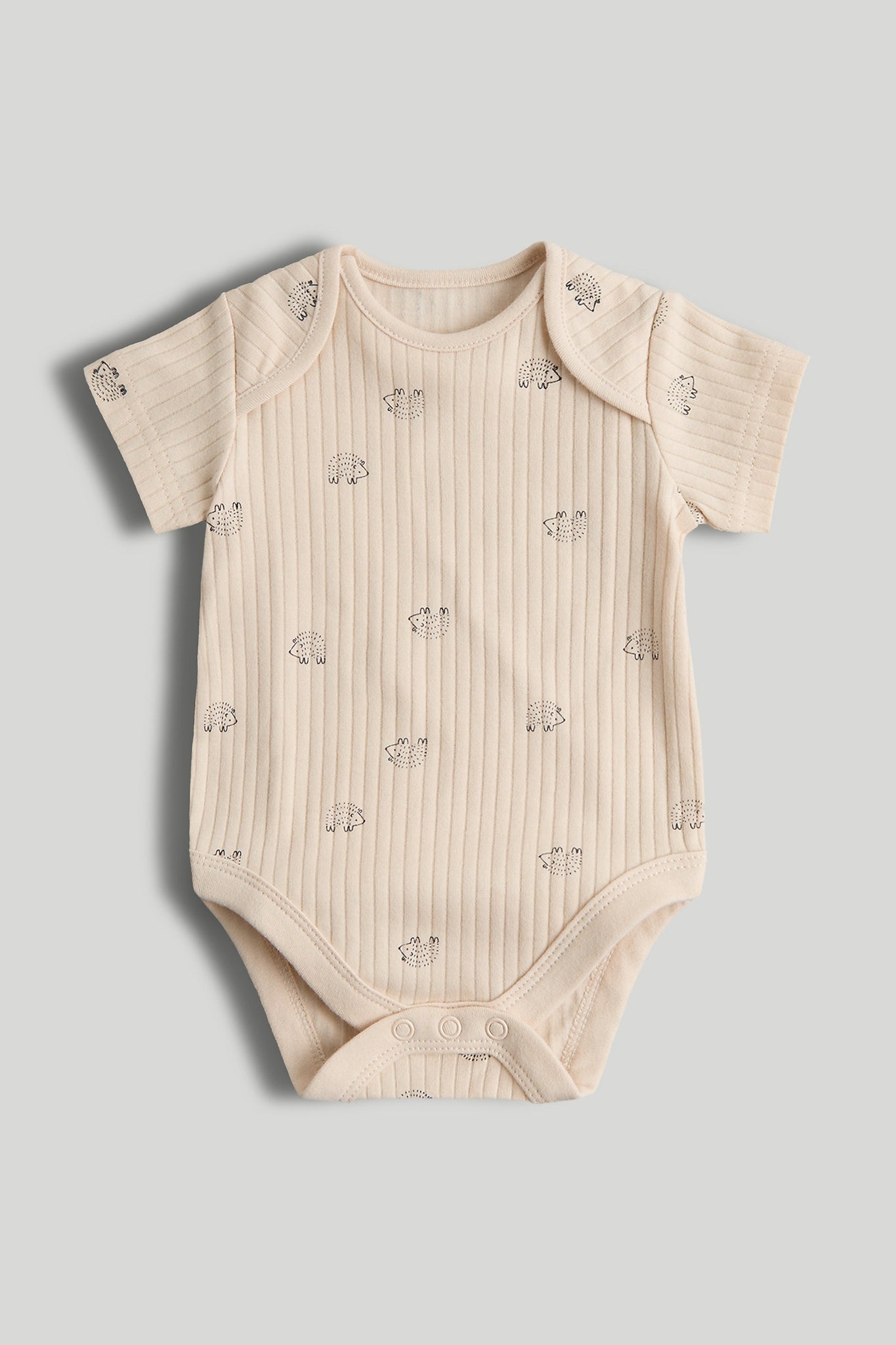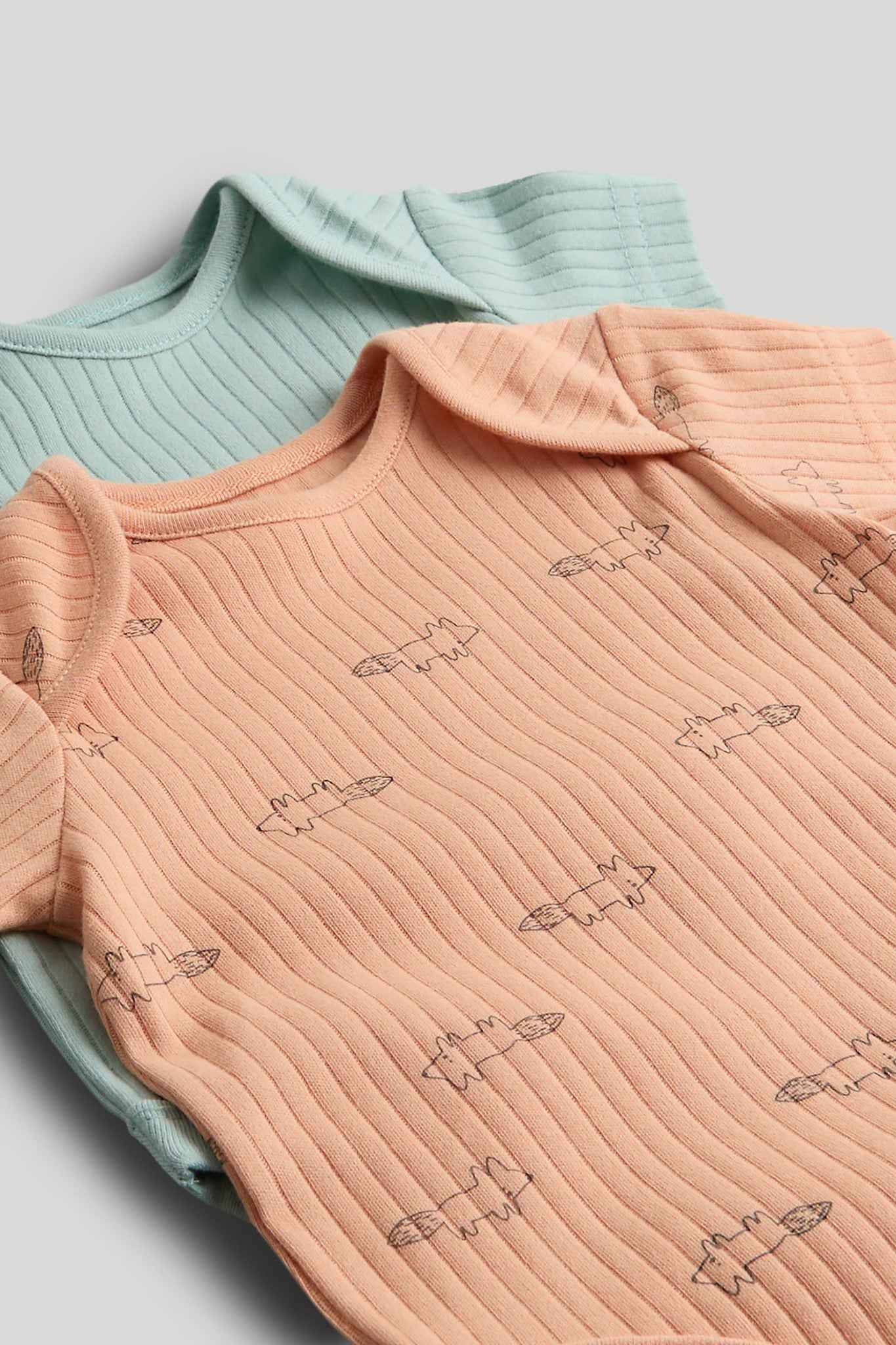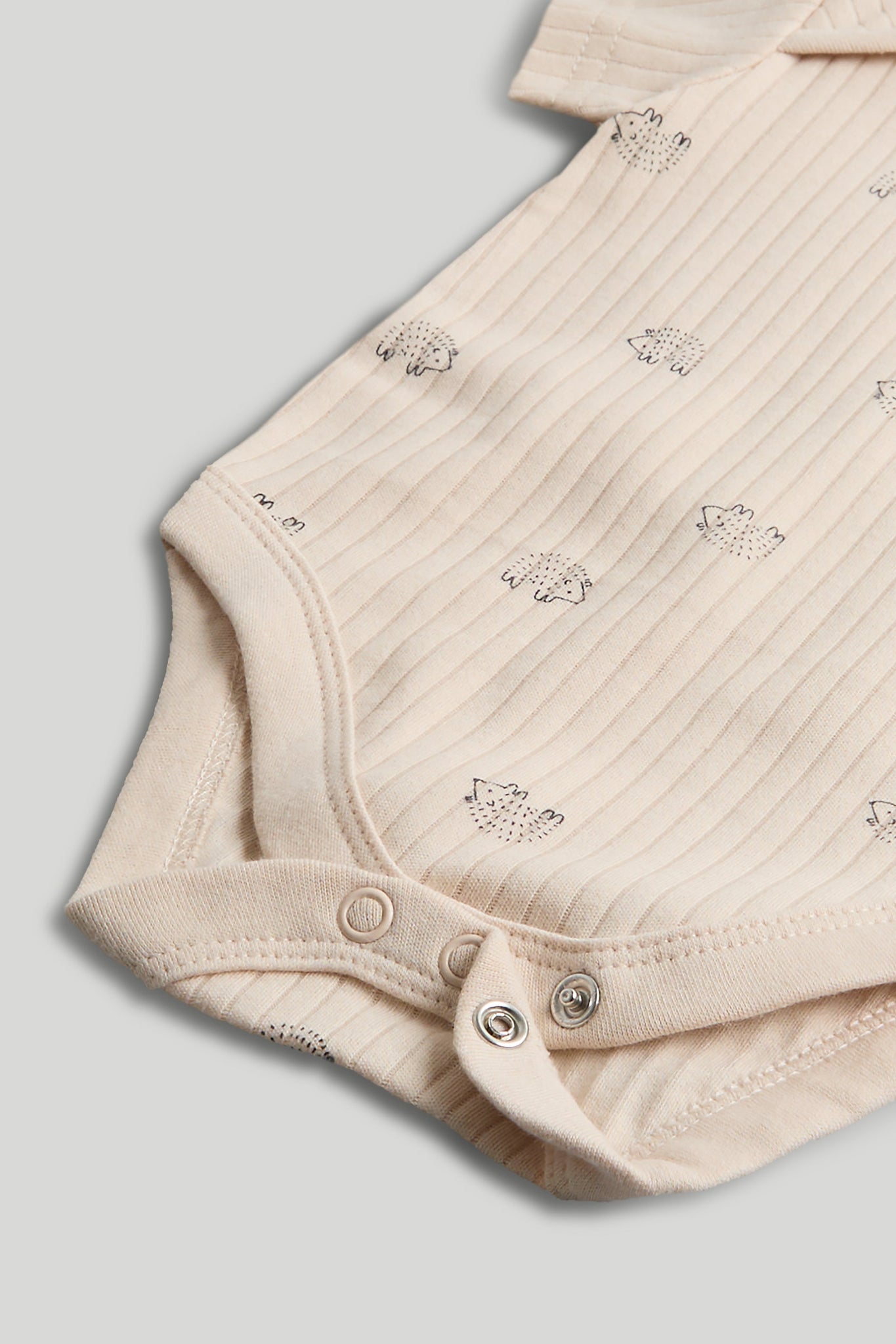 Natural, breathable cotton Interlock knit feels soft, stretches easily yet keeps its shape wash after wash Softly bound hems for comfort Envelope neck which stretches for easy dressing - pull up over baby's head or down past their feet Nickel-free popper fastenings which won't irritate delicate skin Includes: 3 x rib with all-over print 2 x rib