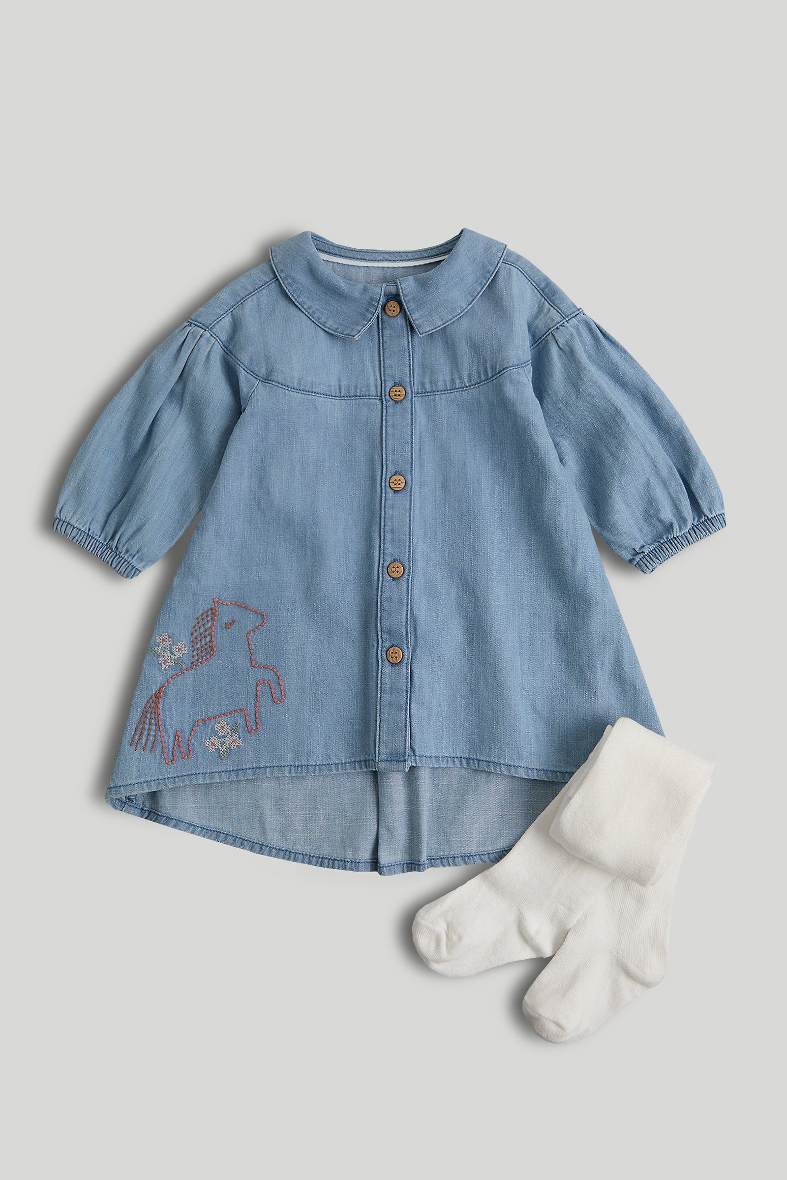 Mothercare Chambray Dress and Tights Outfit