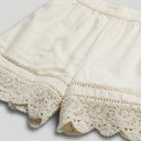 Ladder lace inserts and delicate crochet trim make these pull-on shorts a standout favourite for the season. A fully elasticated waistband offers a flexible fit and all-day comfort.