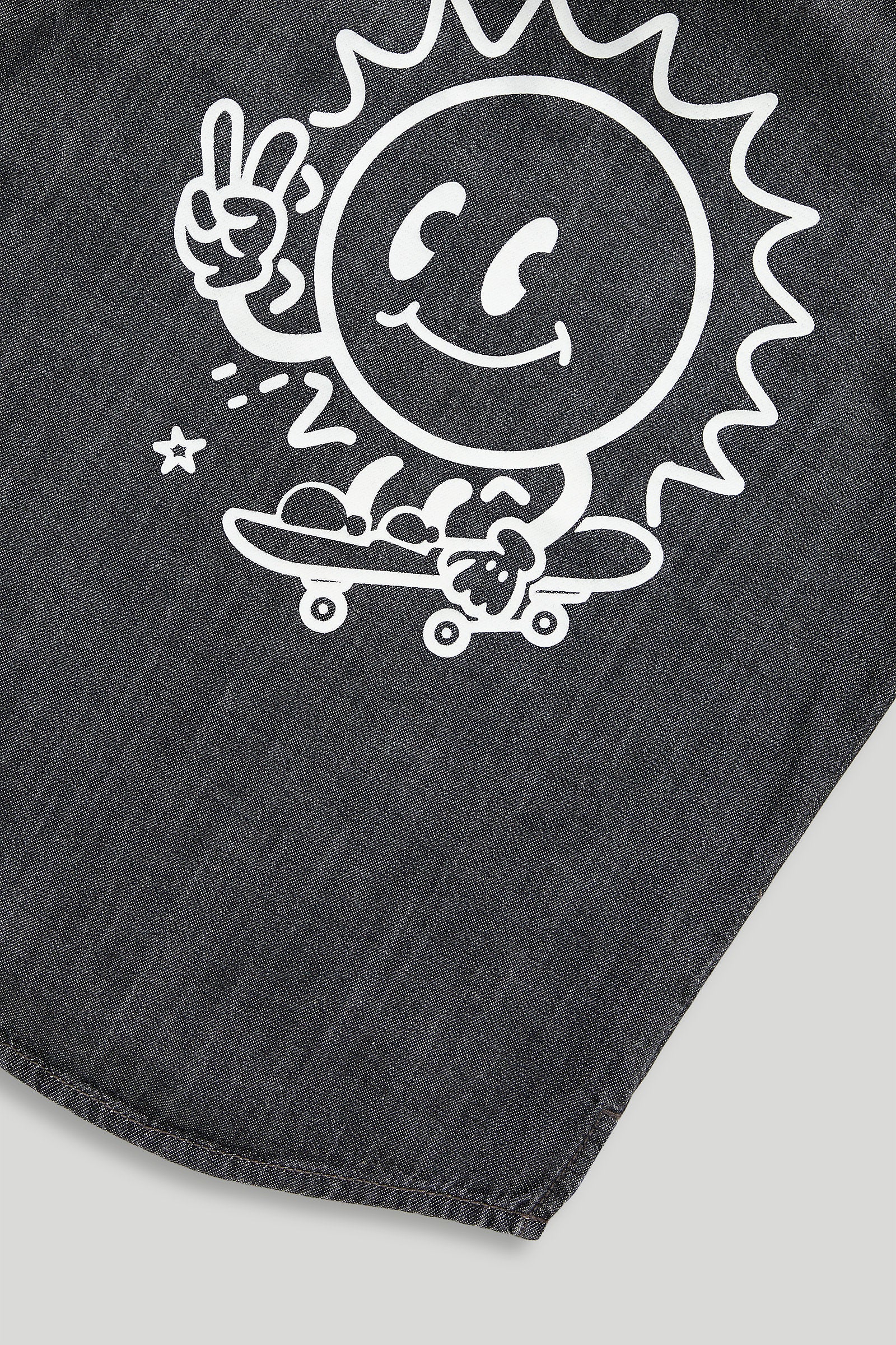 - Shirt features a sun skate design and handy pocket