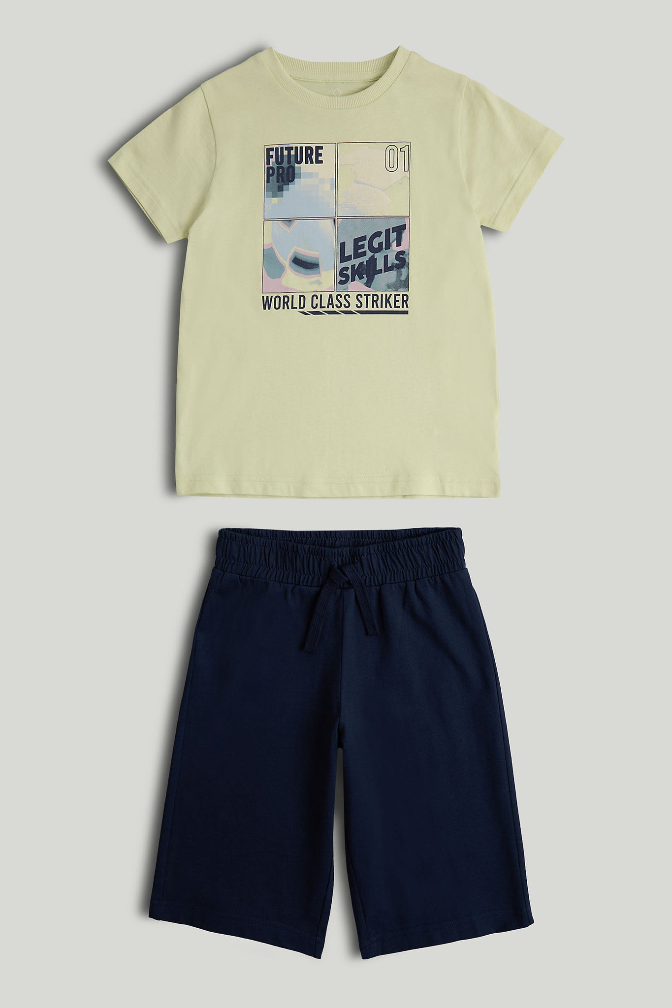 This sporty, printed T-shirt and shorts outfit set is crafted from naturally breathable cotton and designed for all-day comfort.