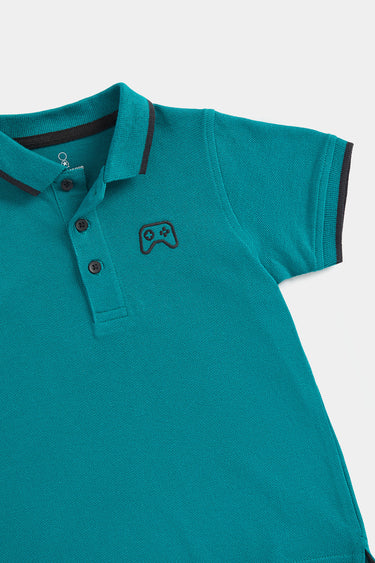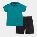 Mothercare Green Polo Shirt and Black Shorts Set