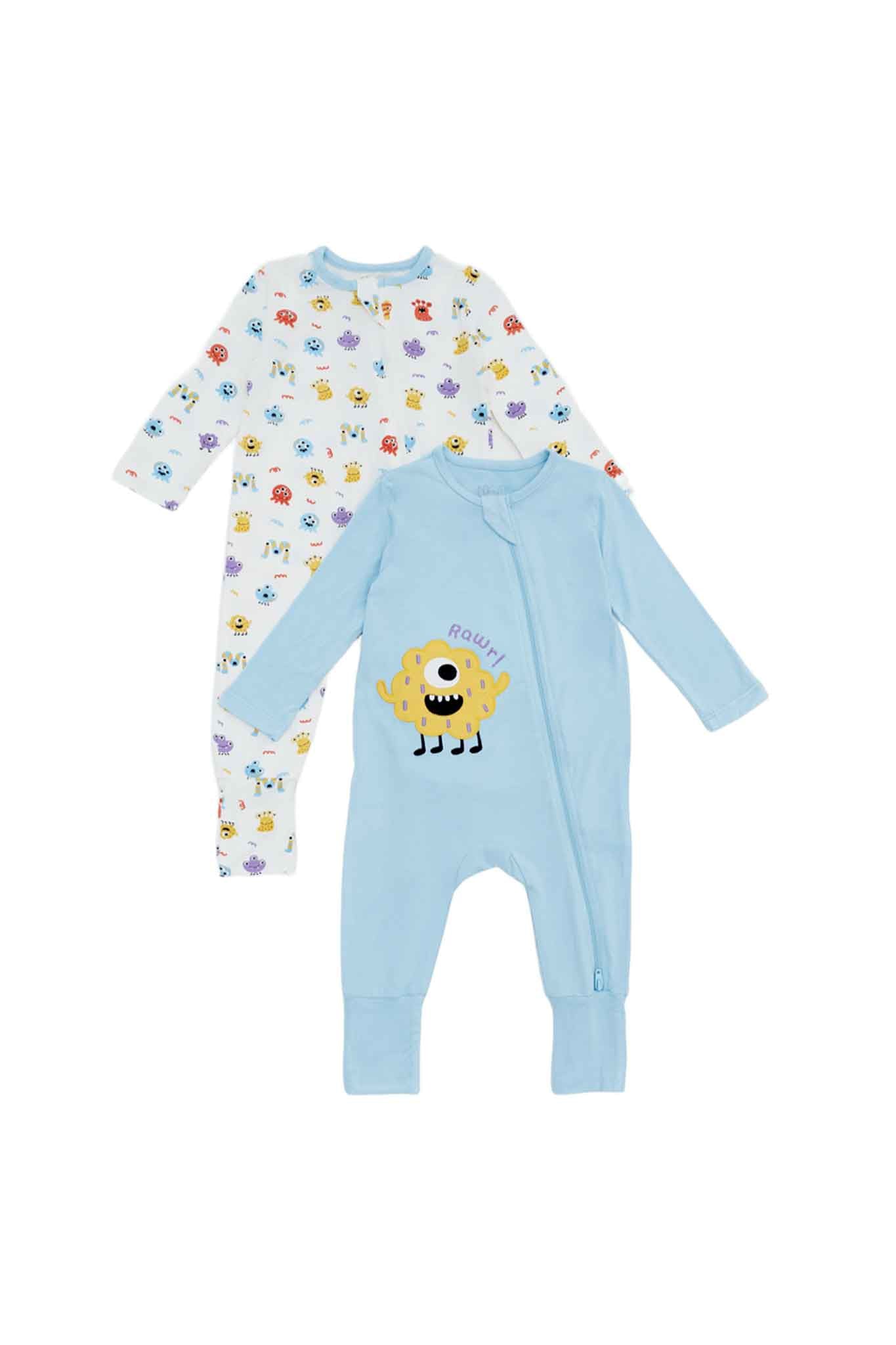 - 2-pack sleepsuits in playful Monster Mischief designs