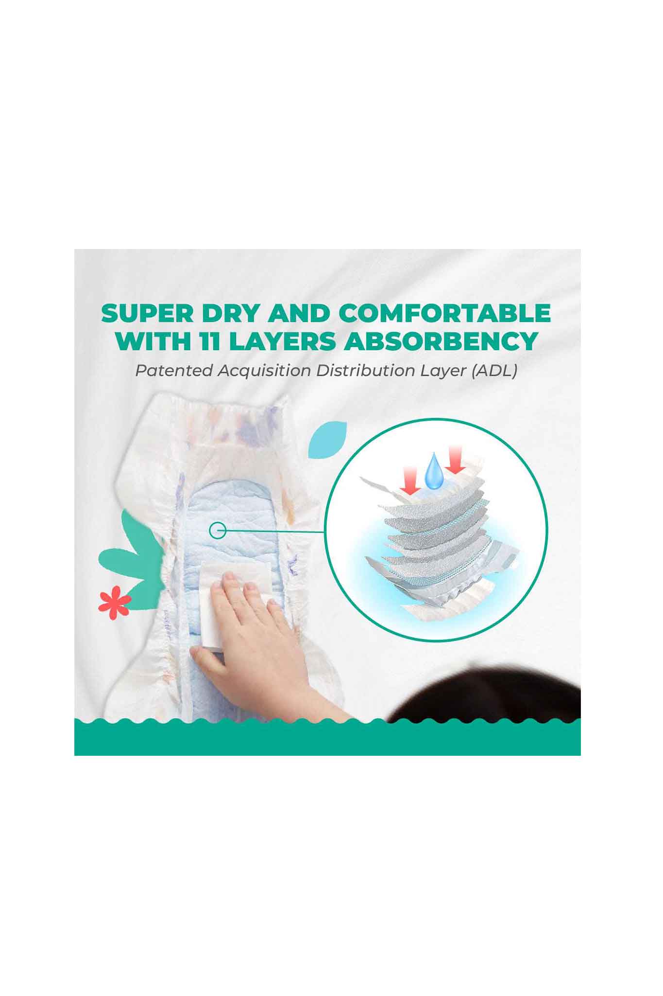 - 11 absorbent layers with dual-core technology