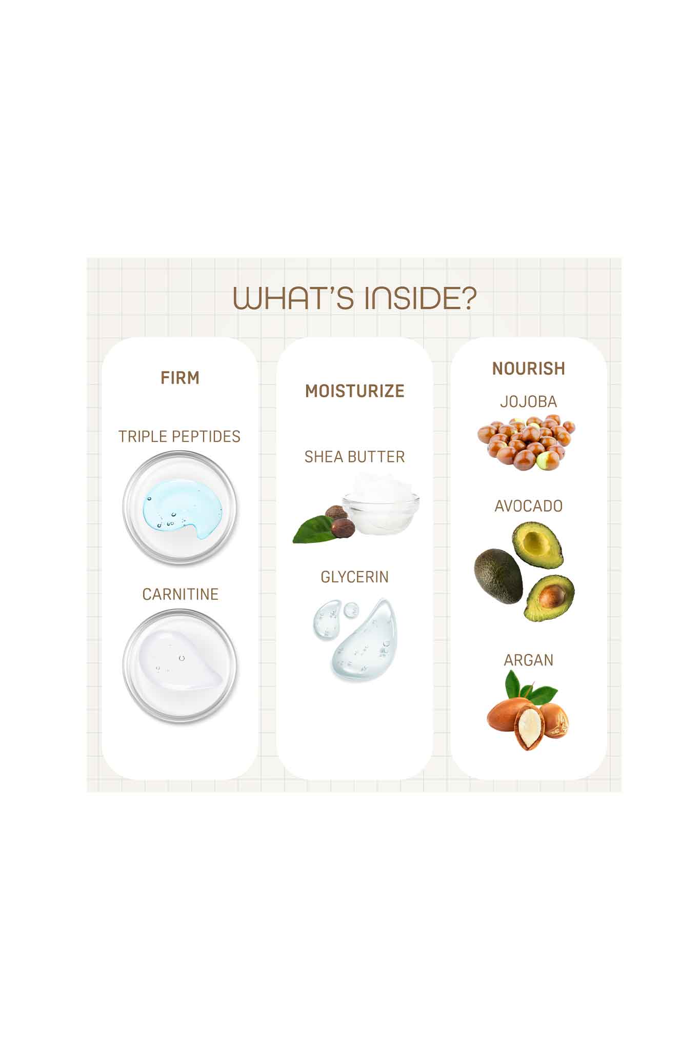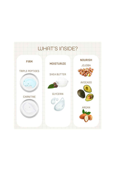 Reinforces skin elasticity with peptides, amino acids and shea butter.