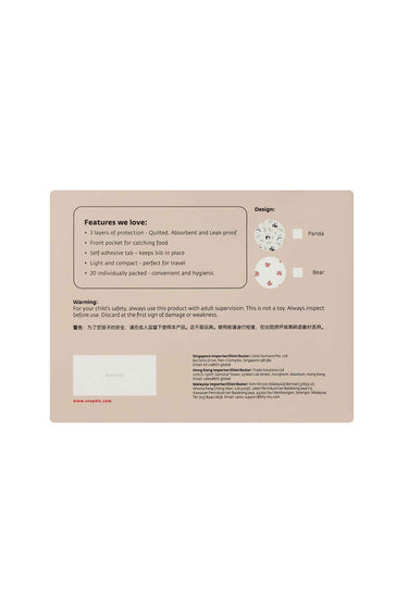 - 20 individually packed bibs hygienic and convenient for on-the-go feeding