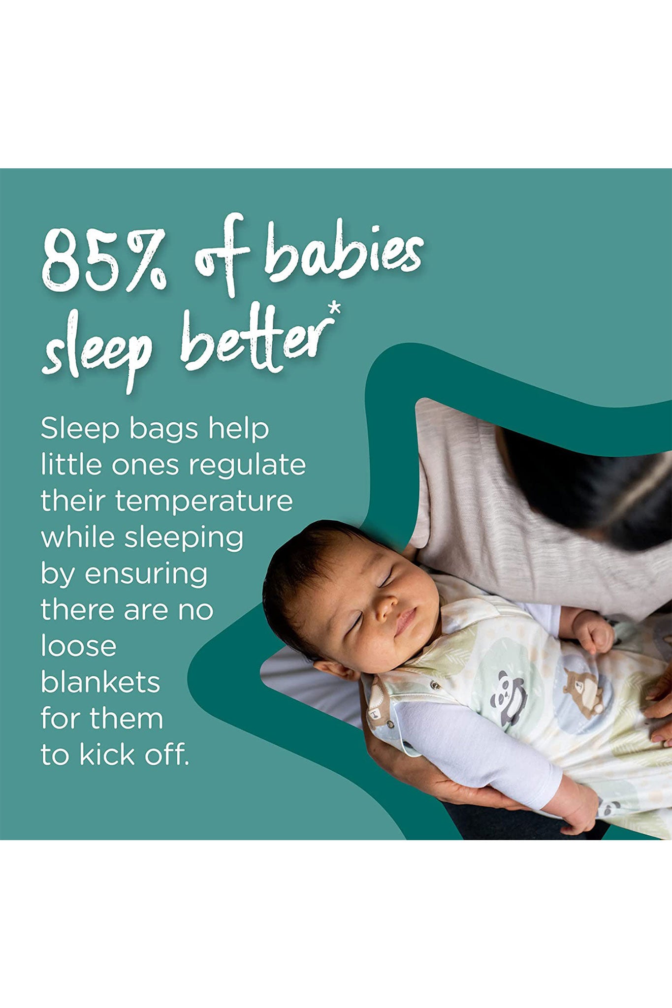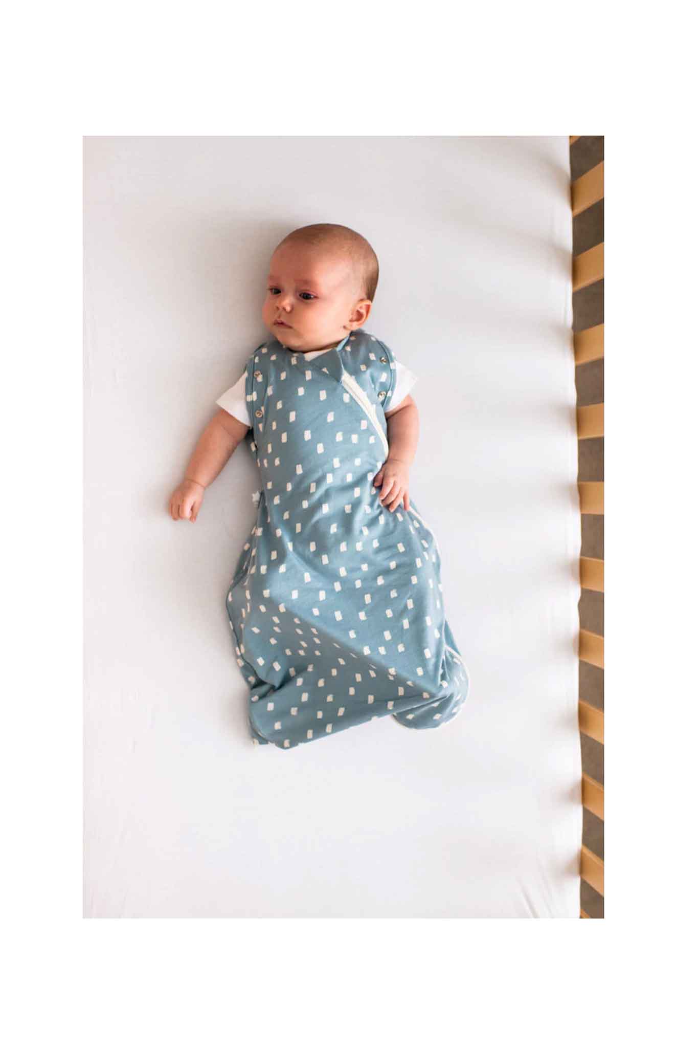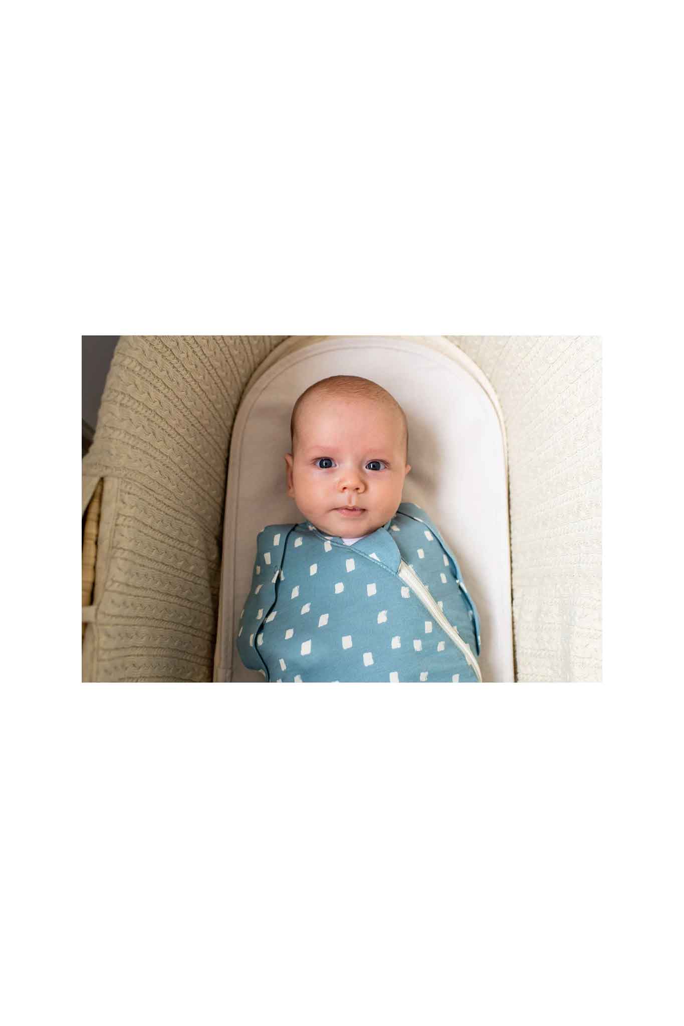 - Arms in or out, no complicated fastenings or wrapping, baby can be swaddled and then transitioned to arms out sleeping, one arm at a time