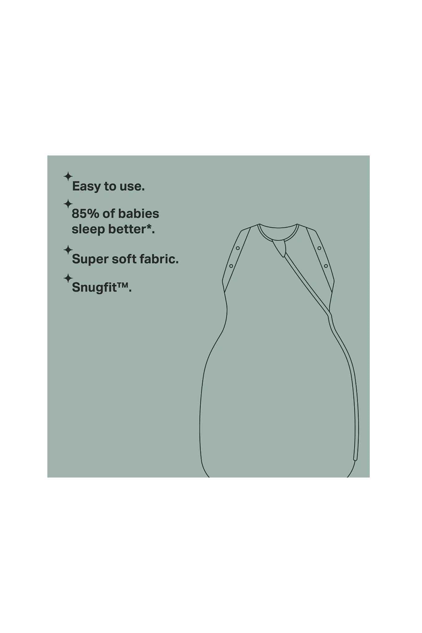 Made from super soft, bamboo-rich fabric and our signature ALOEKIND™ fabric, a unique cotton-blend infused with naturally soothing Aloe Vera, that’s soft and gentle on baby’s skin and perfect for a comfortable night’s sleep. Our luxury 2.5 Tog Swaddlebags are made with 100% recycled polyester wadding that has obtained the OEKO-TEX® 100 class 1 certification meaning it is guaranteed to be free from harmful chemicals, toxins and irritants.