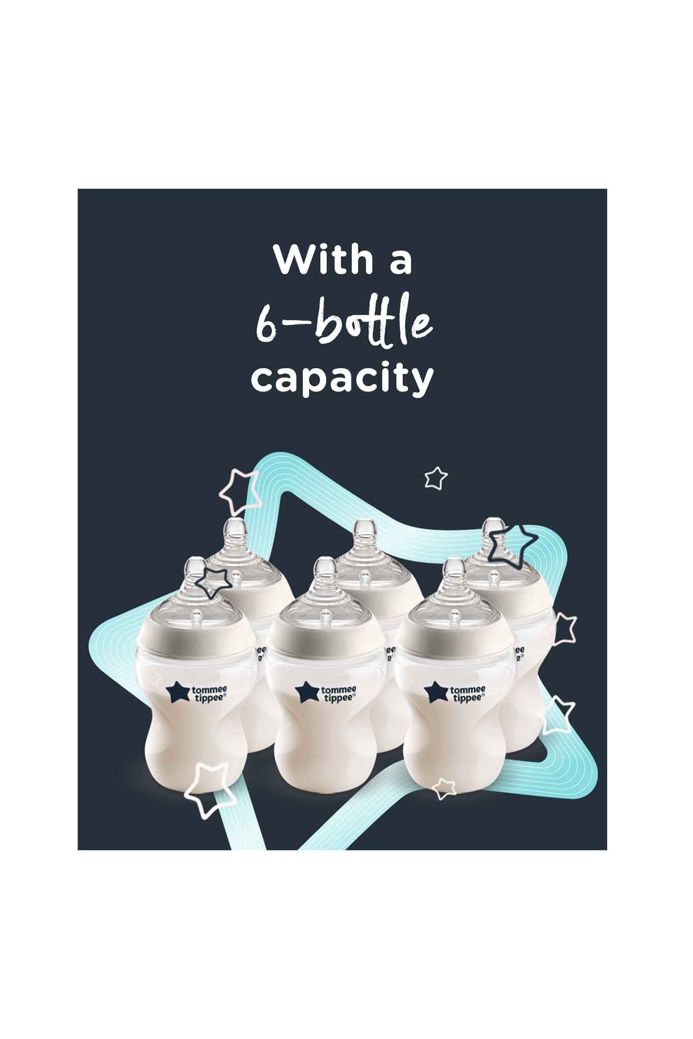 - Capacity: up to six 150–260 ml bottles plus parts & accessories