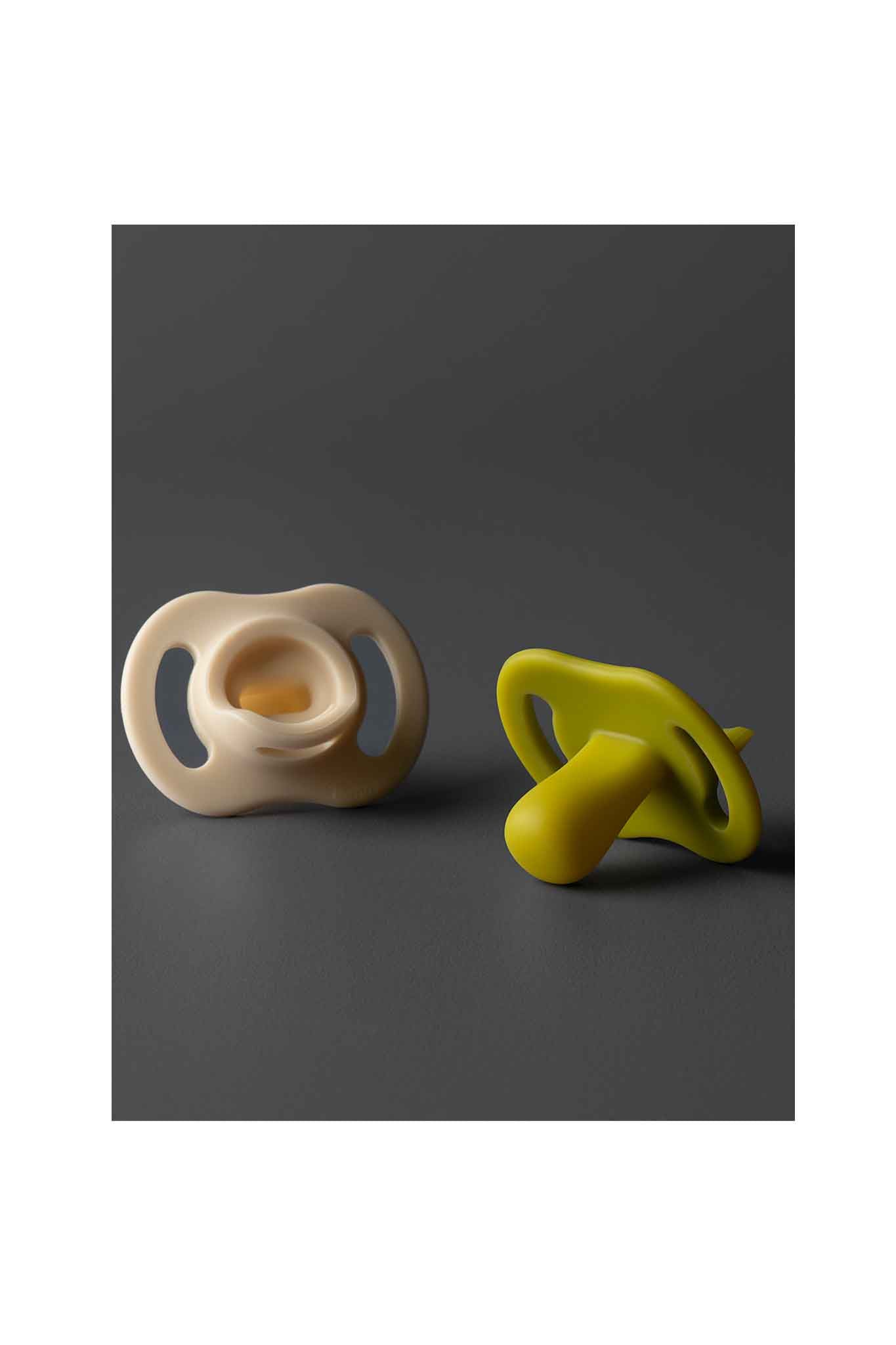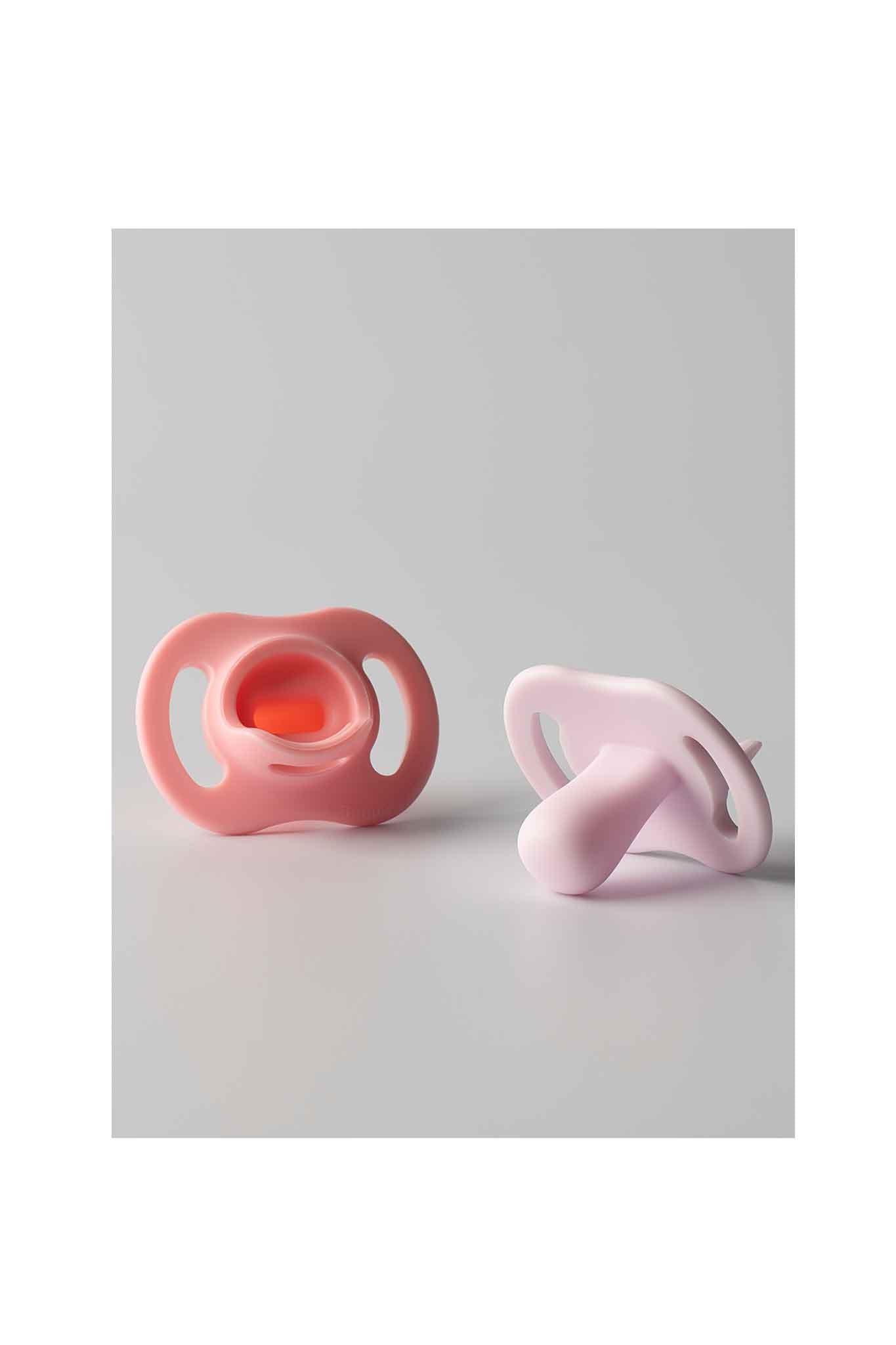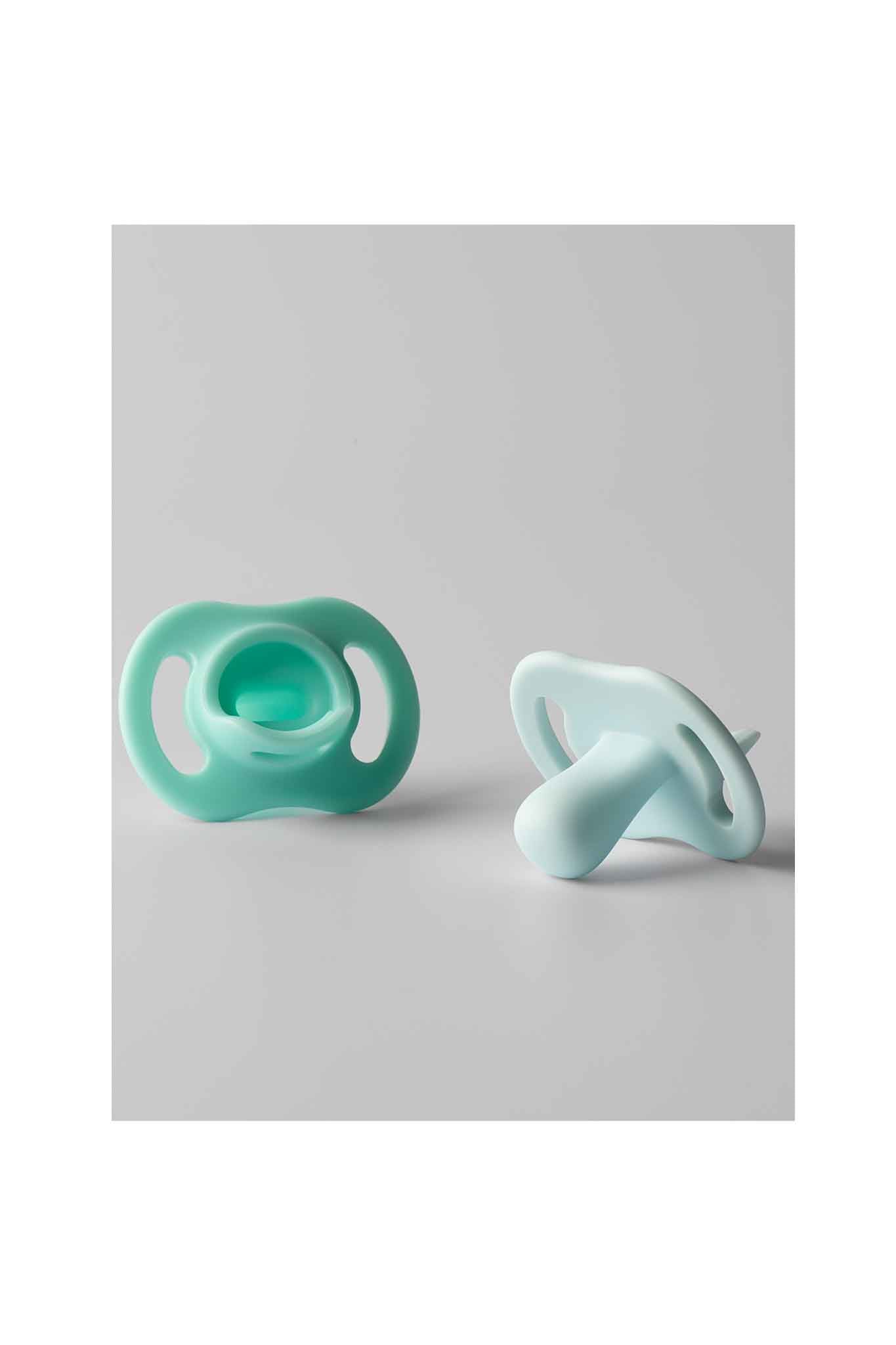 Included: 2 ultra-light silicone pacifiers (with sterilization box)