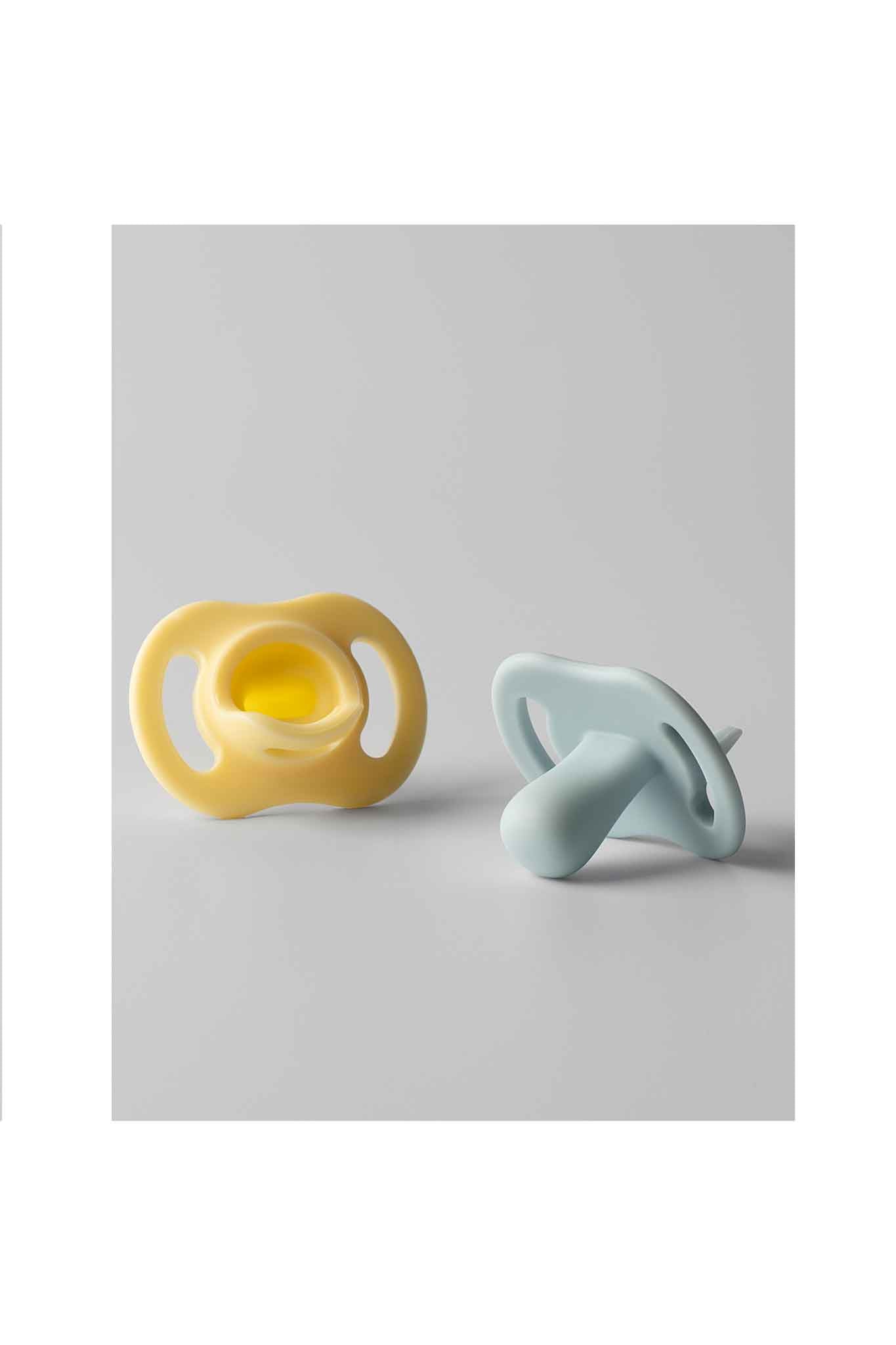 The lightest one-piece silicone pacifier*. It's 20% lighter than our original Ultralight pacifier, allowing it to stay in baby's mouth longer. It features a symmetrical nipple and shield that fits comfortably on baby's face and can be turned up symmetrically on both sides.